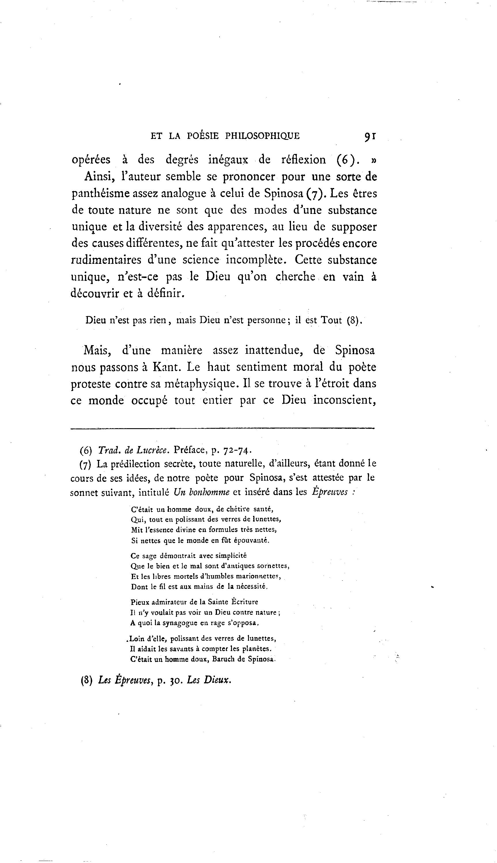 cours de ses idées, de notre poète pour Spinosa, s'est attestée par le