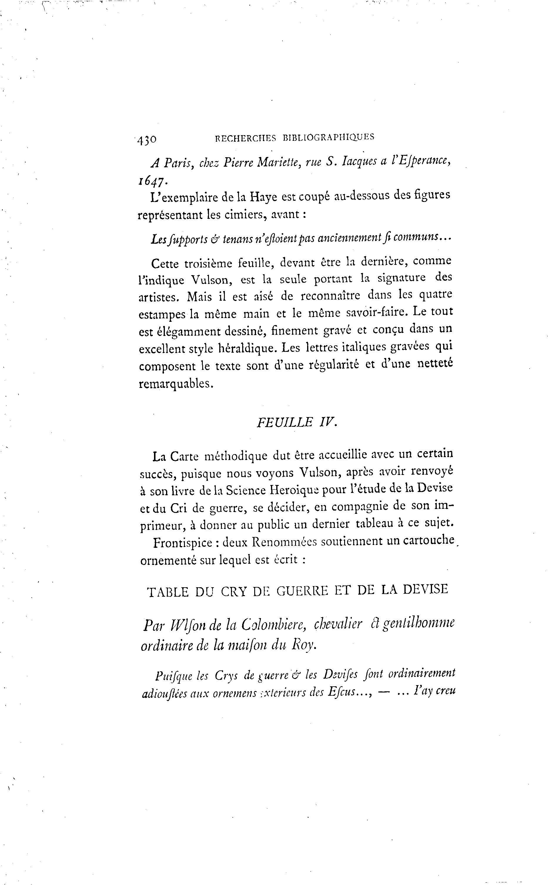 430 RECHERCHES BIBLIOGRAPHIQUES