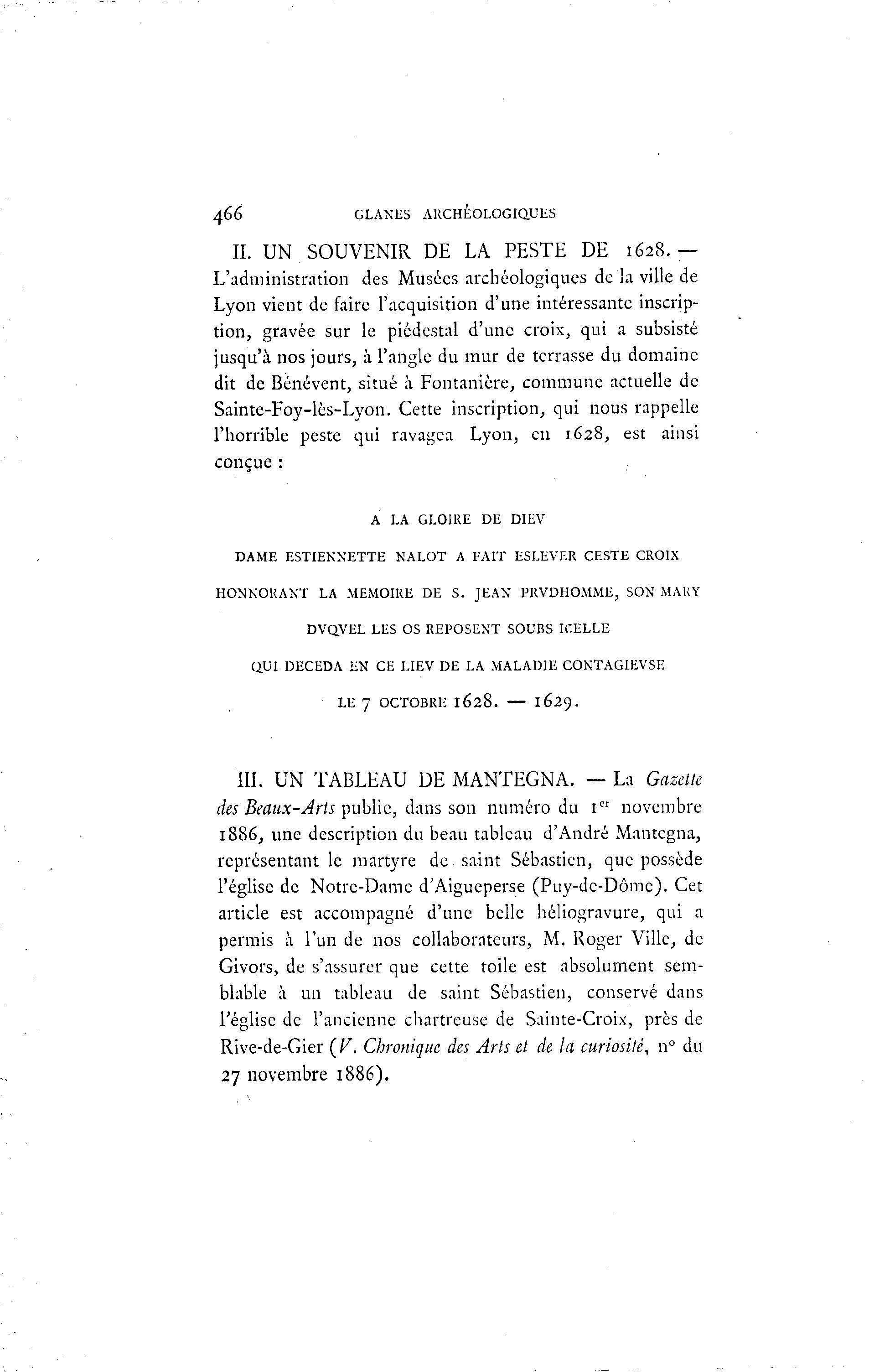 tion, gravée sur le piédestal d'une croix, qui a subsisté