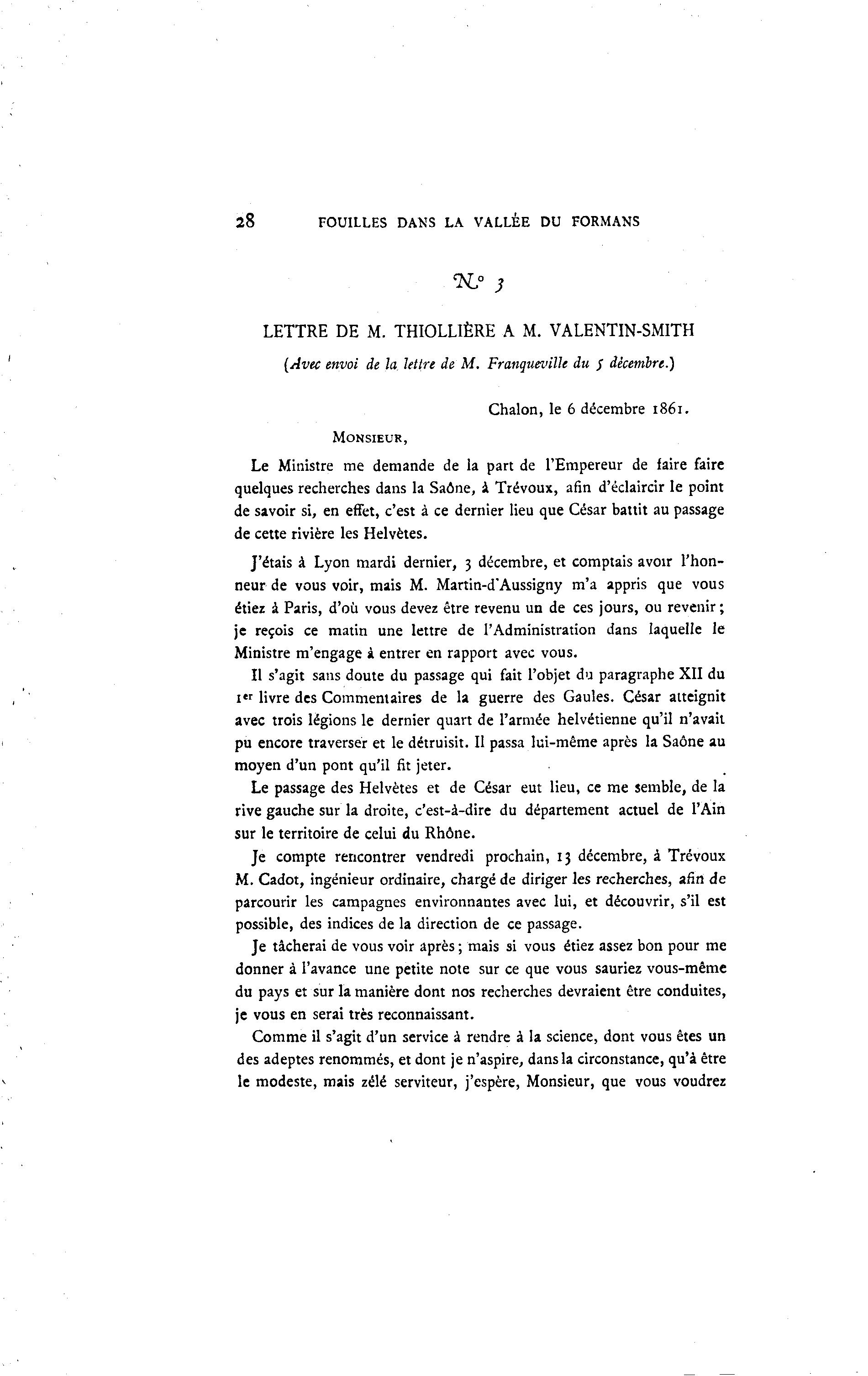 LETTRE DE M. THIOLL1ÈRE A M. VALENTIN-SMITH