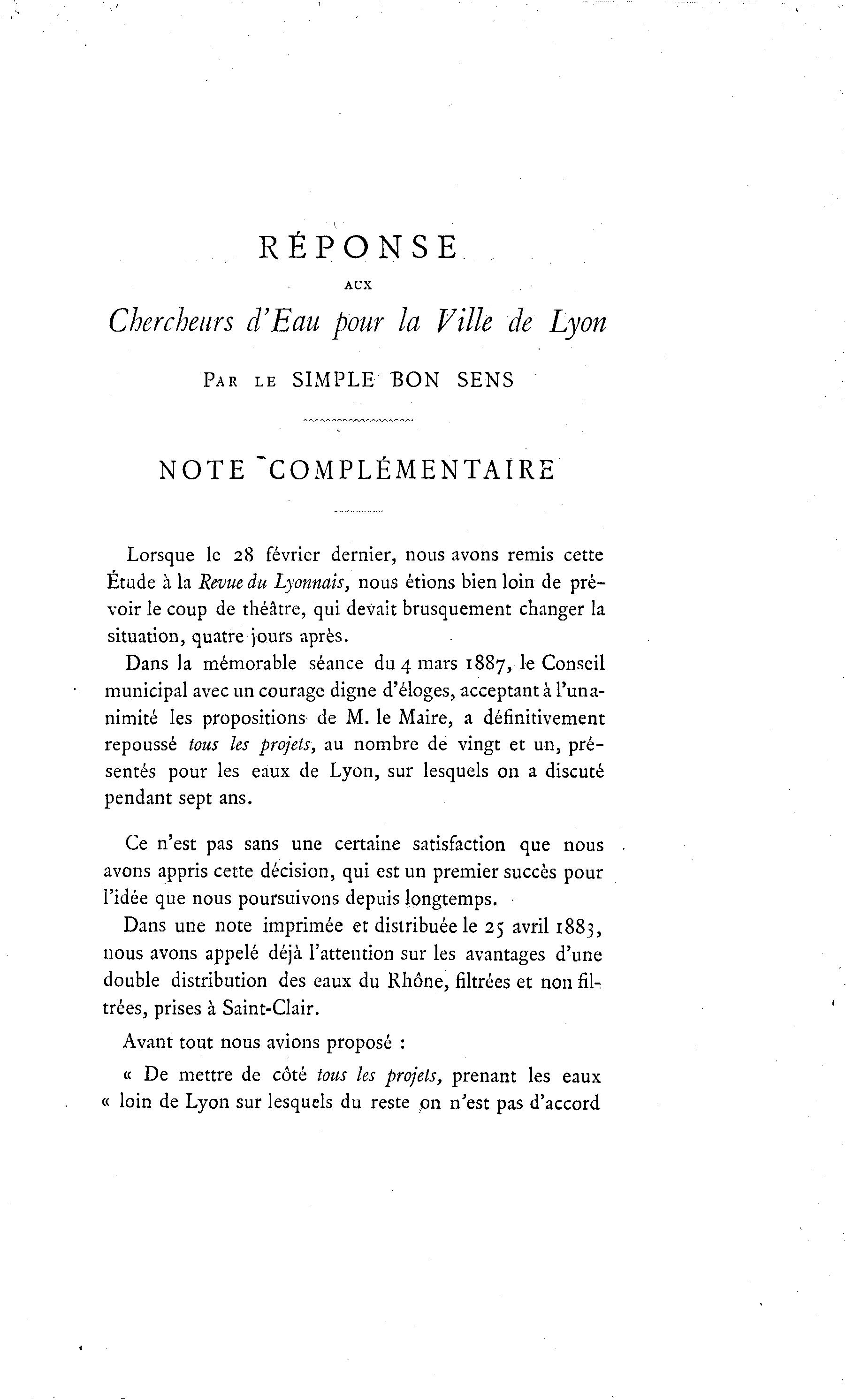 sentés pour les eaux de Lyon, sur lesquels on a discuté