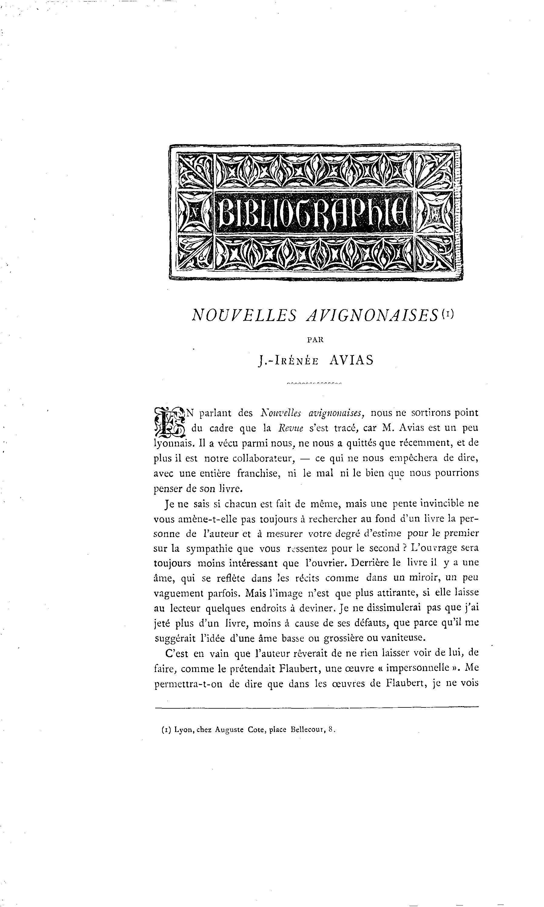 (i) Lyon, chez Auguste Cote, place Bellecour, 8.