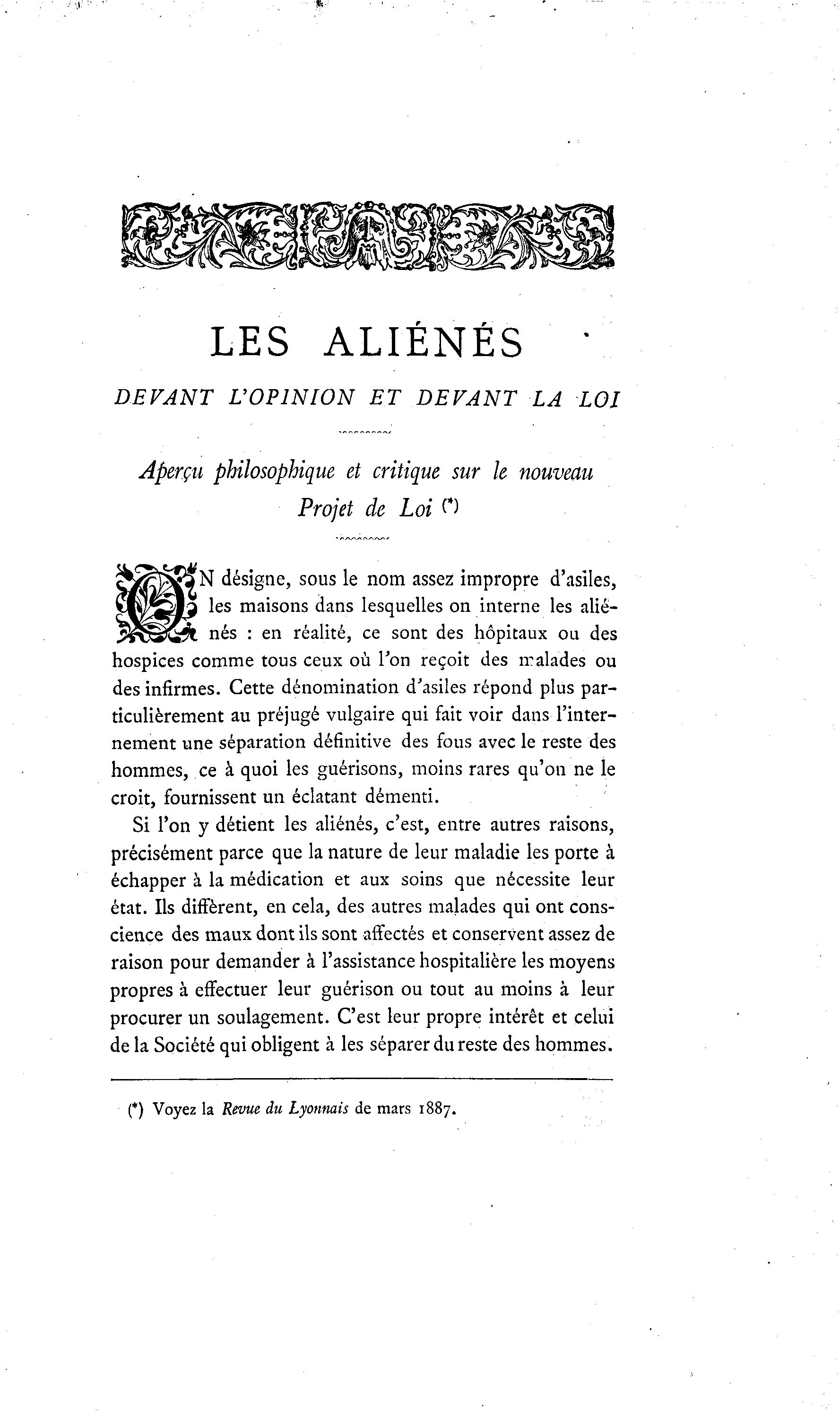 (*) Voyez la Revue du Lyonnais de mars 1887.