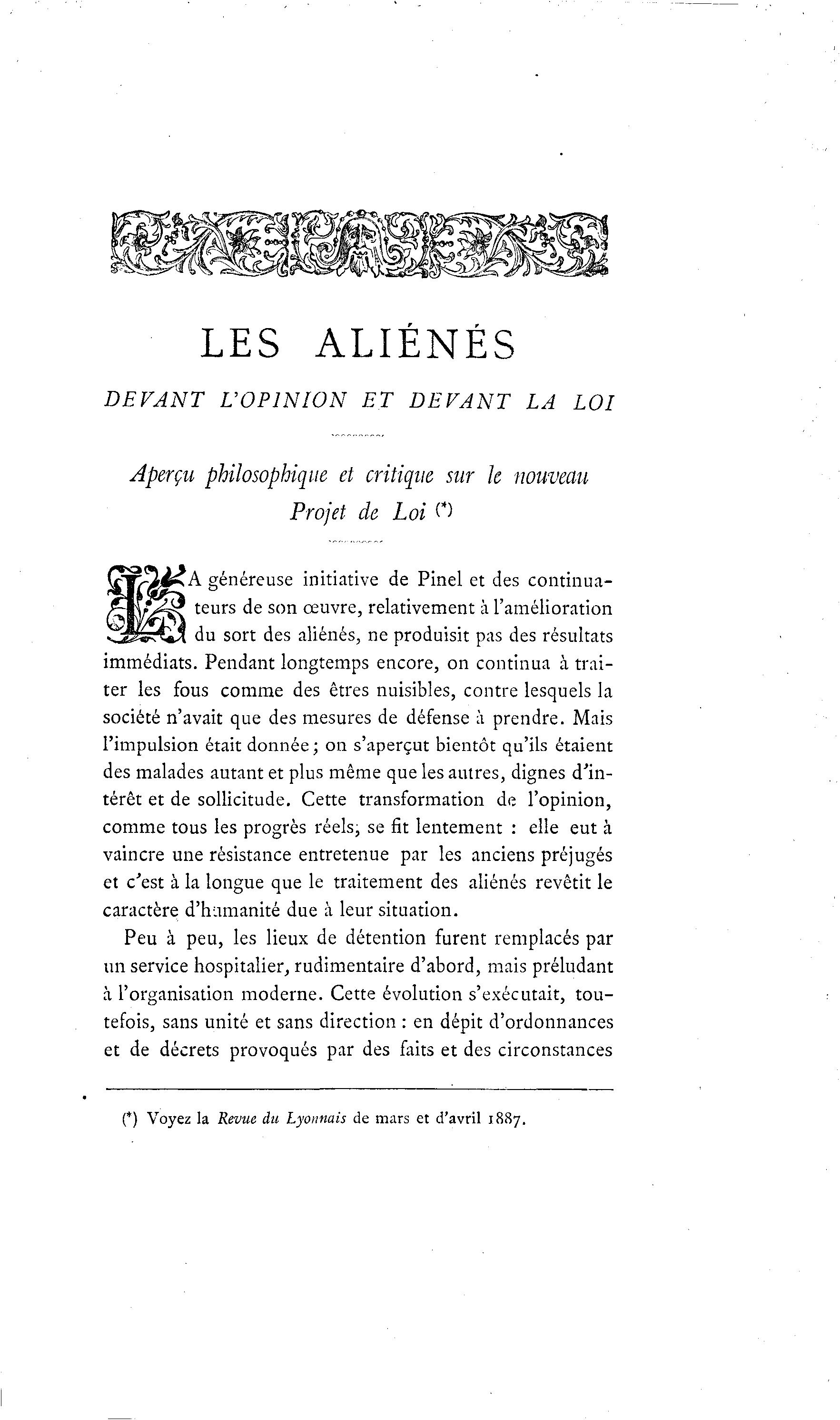(*) Voyez la Revue du Lyonnais de mars et d'avril 1887.