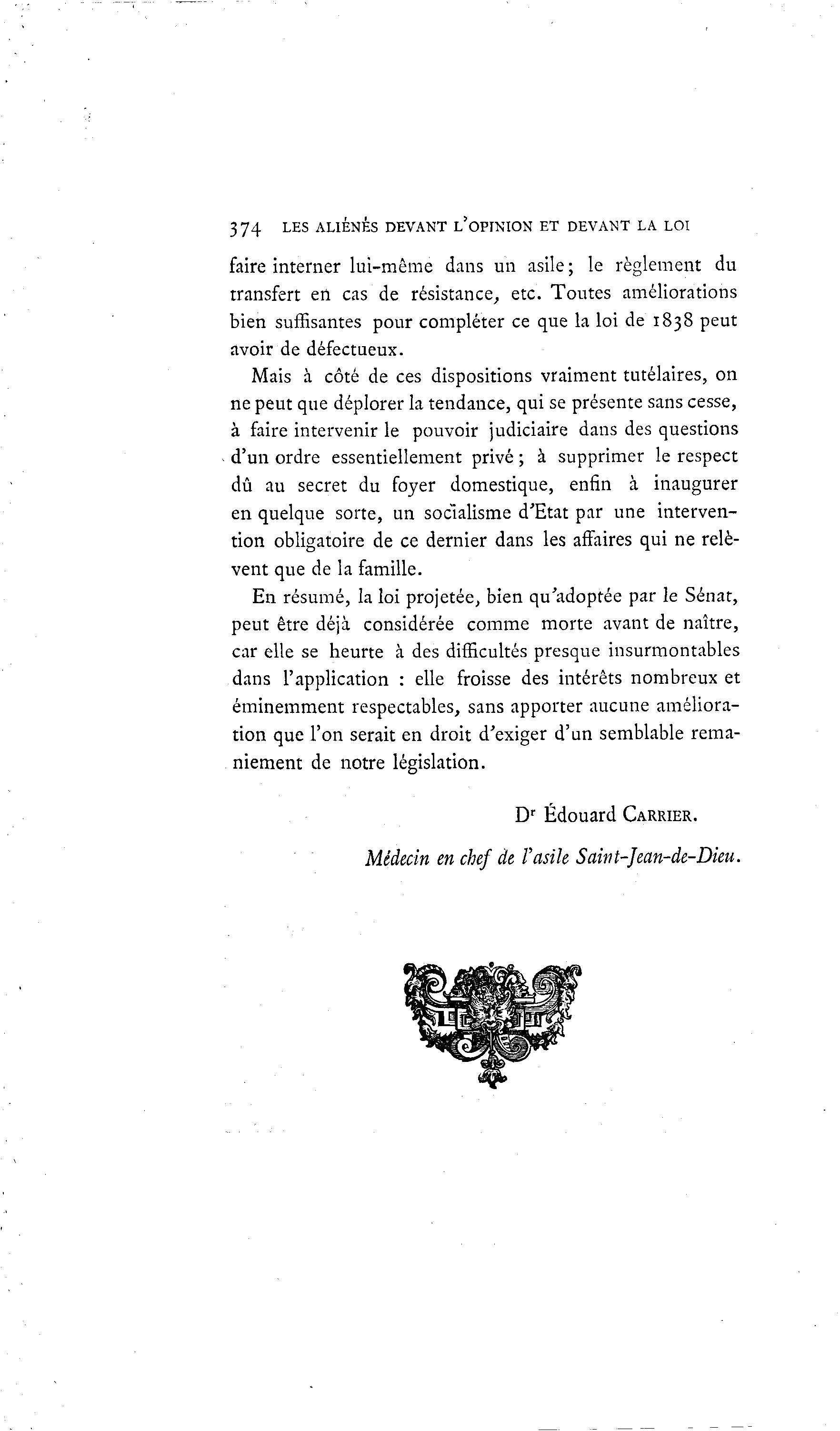 374 ALIÉNÉS DEVANT L'OPINION ET DEVANT LA LOI
