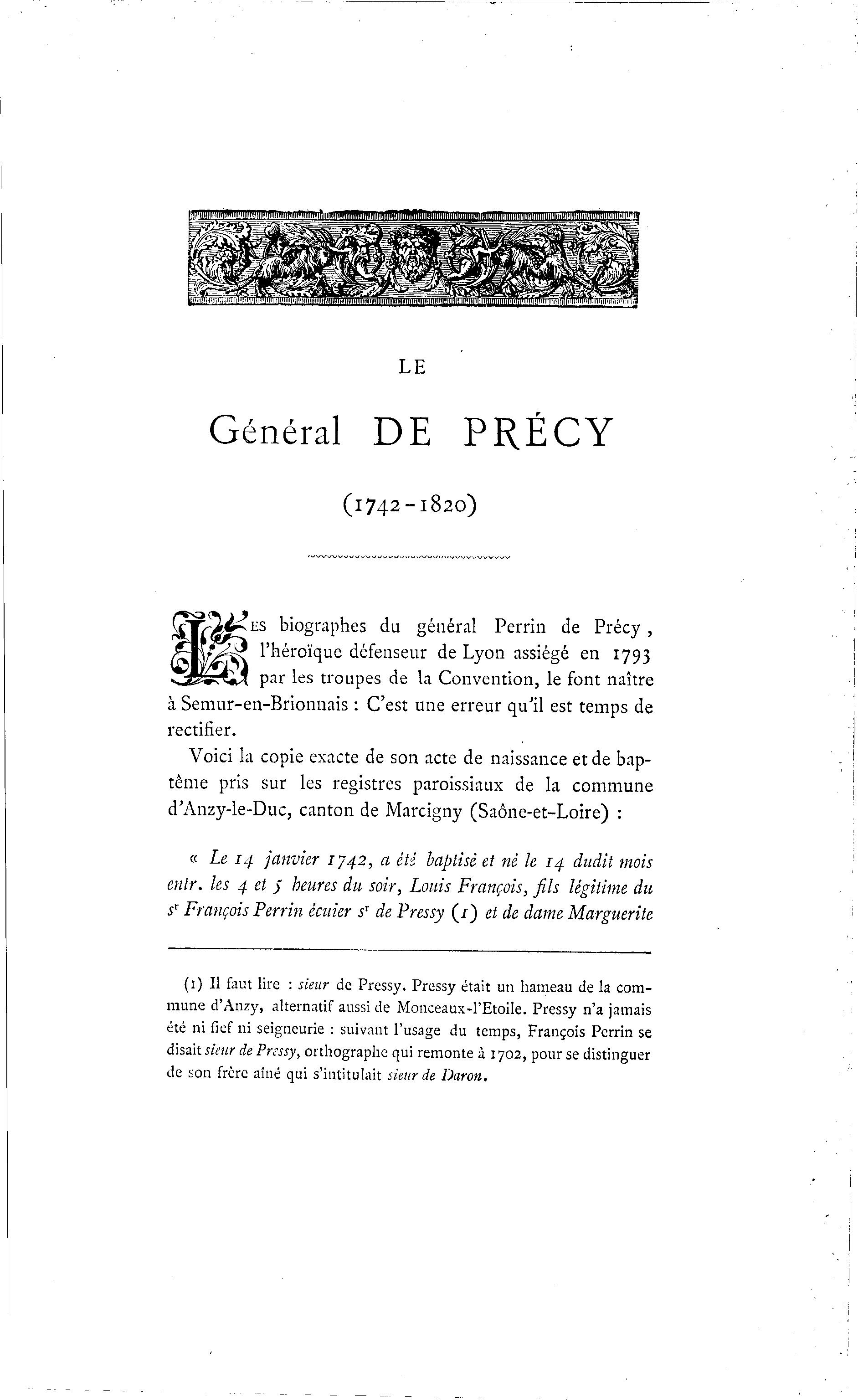 ES biographes du général Perrin de Précy ,
