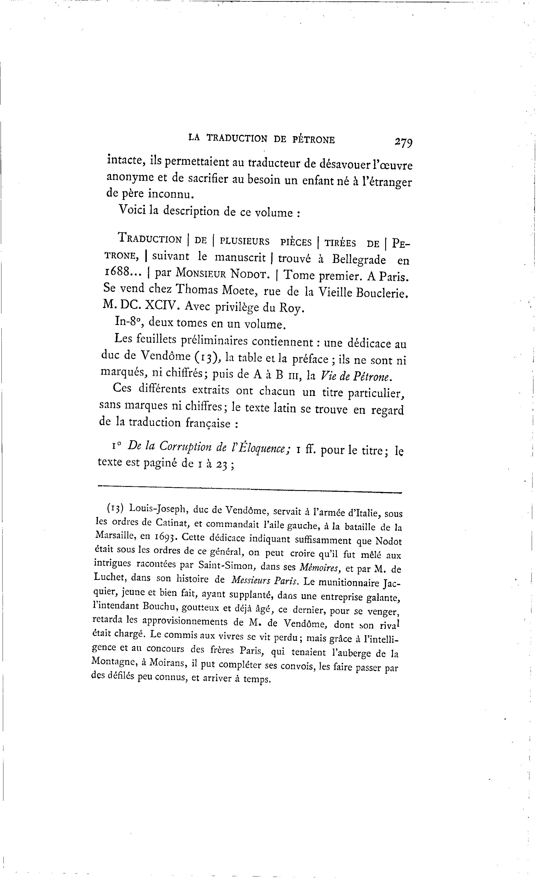 Marsaille, en 1693. Cette dédicace indiquant suffisamment que Nodot