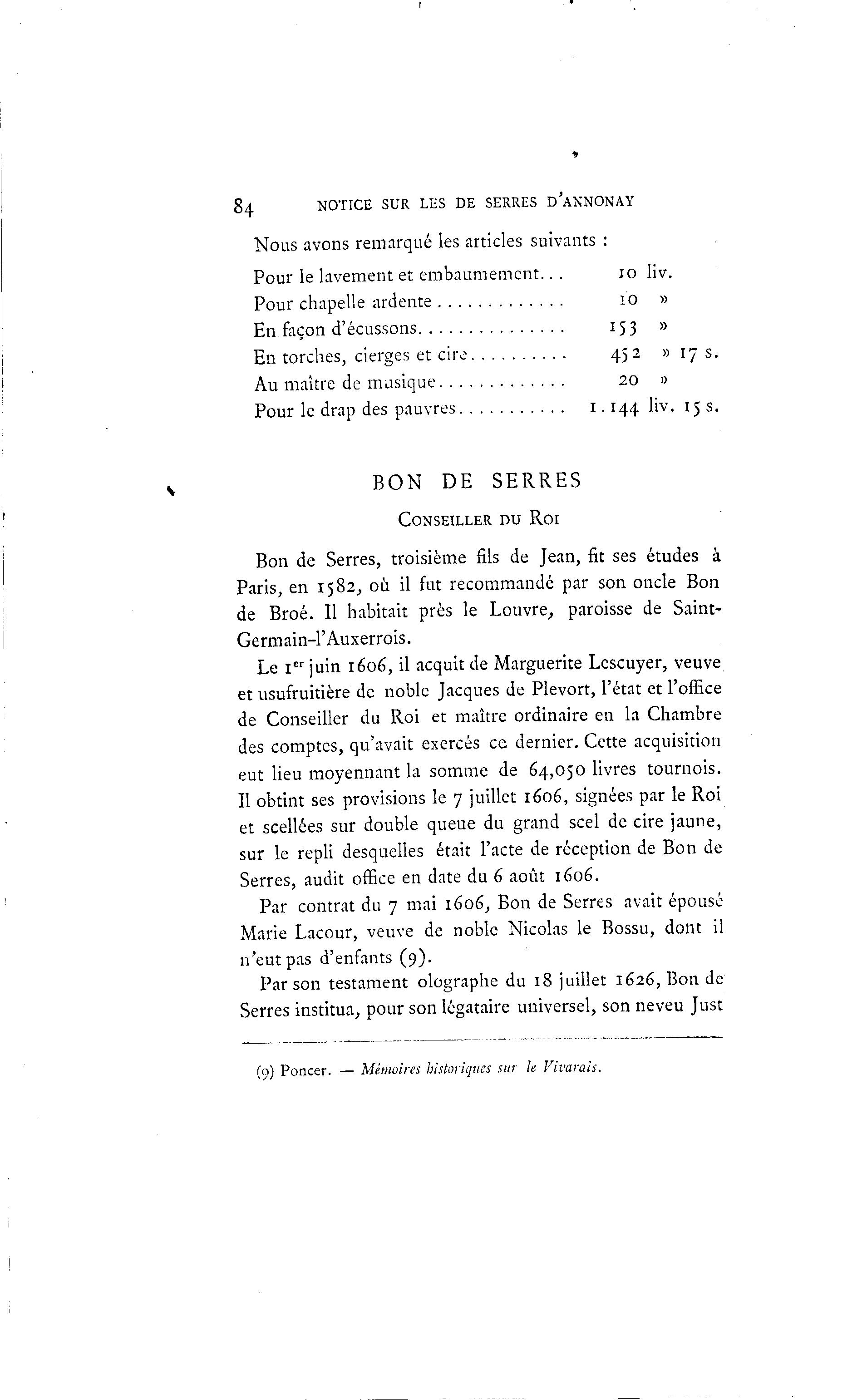 (9) Poncer. — Mémoires historiques sur le Vivarais.