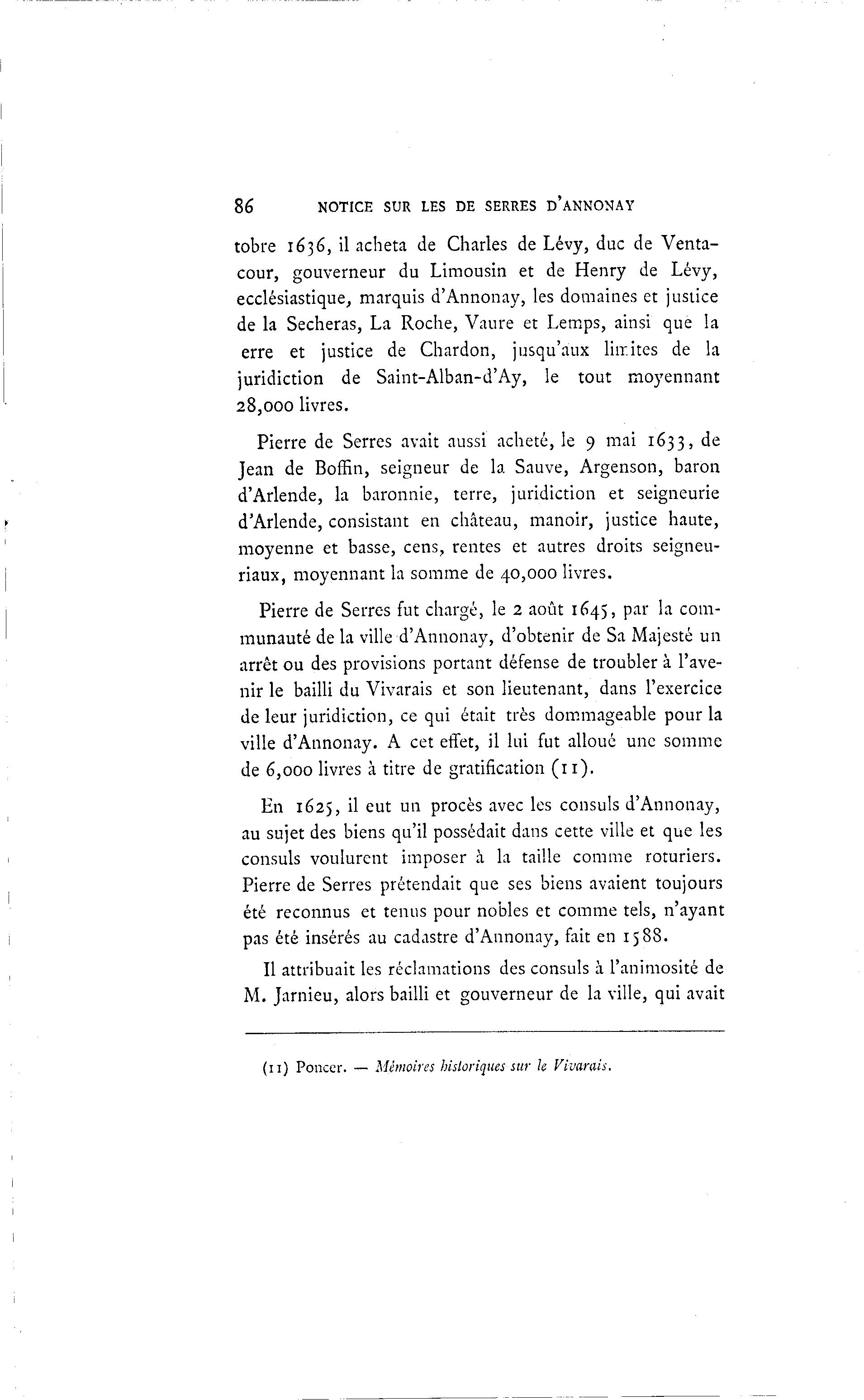 (11) Poncer. — Mémoires historiques sur k Vivarais,
