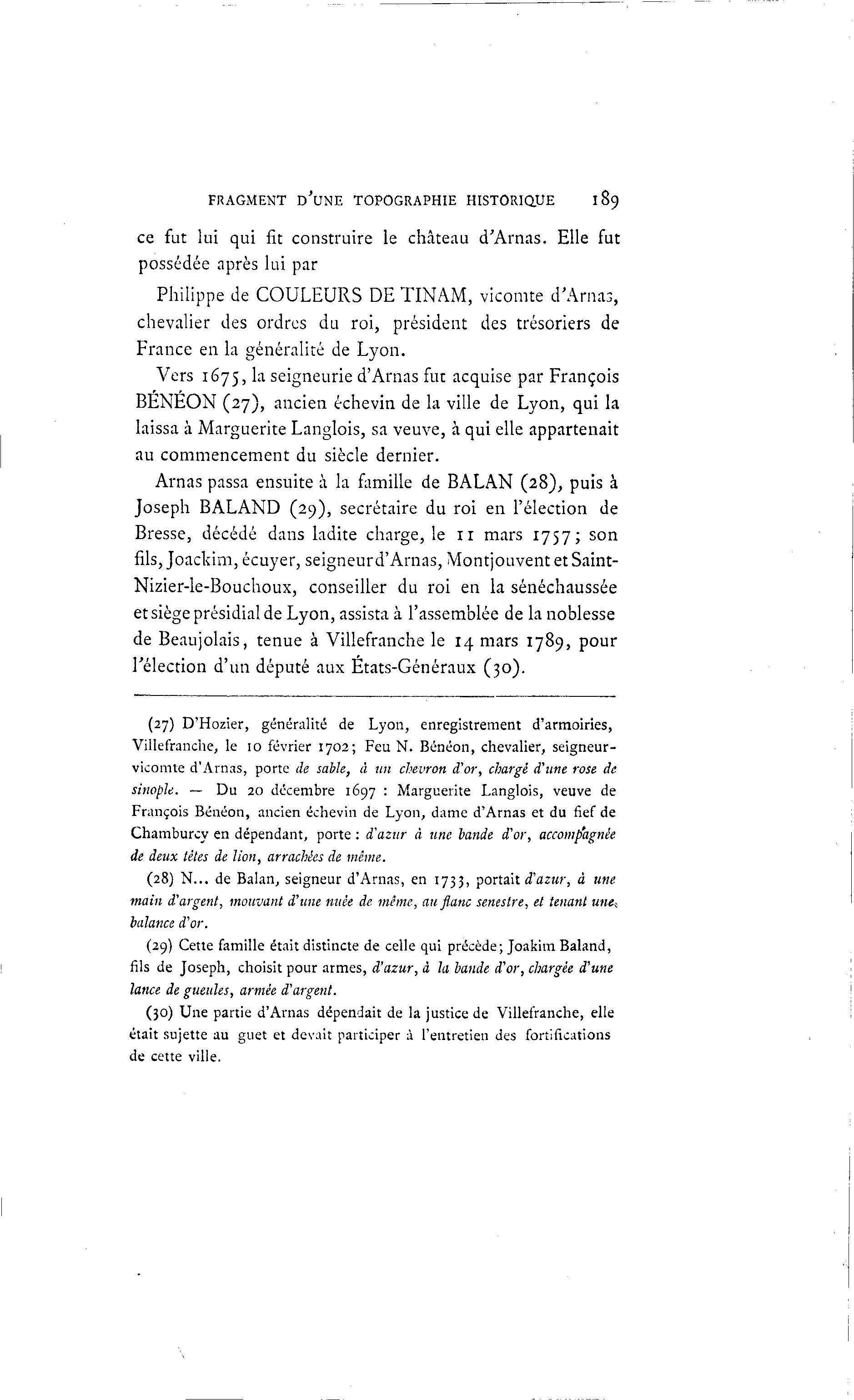(30) Une partie d'Arnas dépendait de la justice de Villefranche, elle