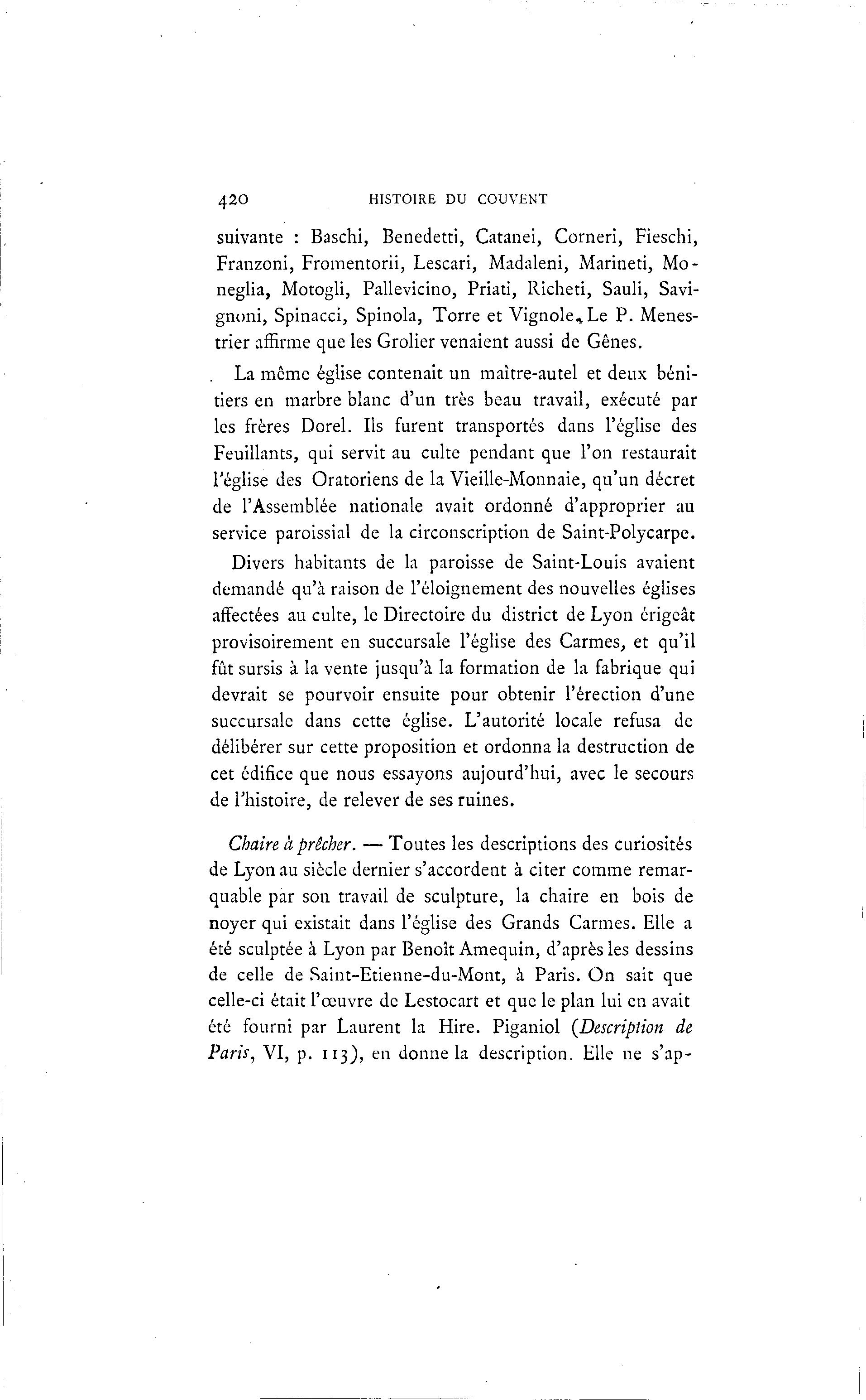 de Lyon au siècle dernier s'accordent à citer comme remar-