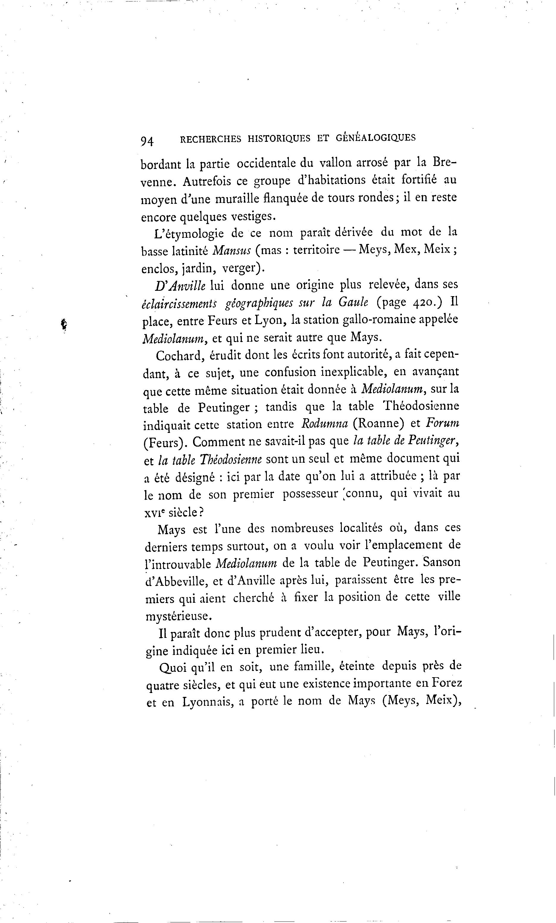 et en Lyonnais, a porté le nom de Mays (Meys, Meix),