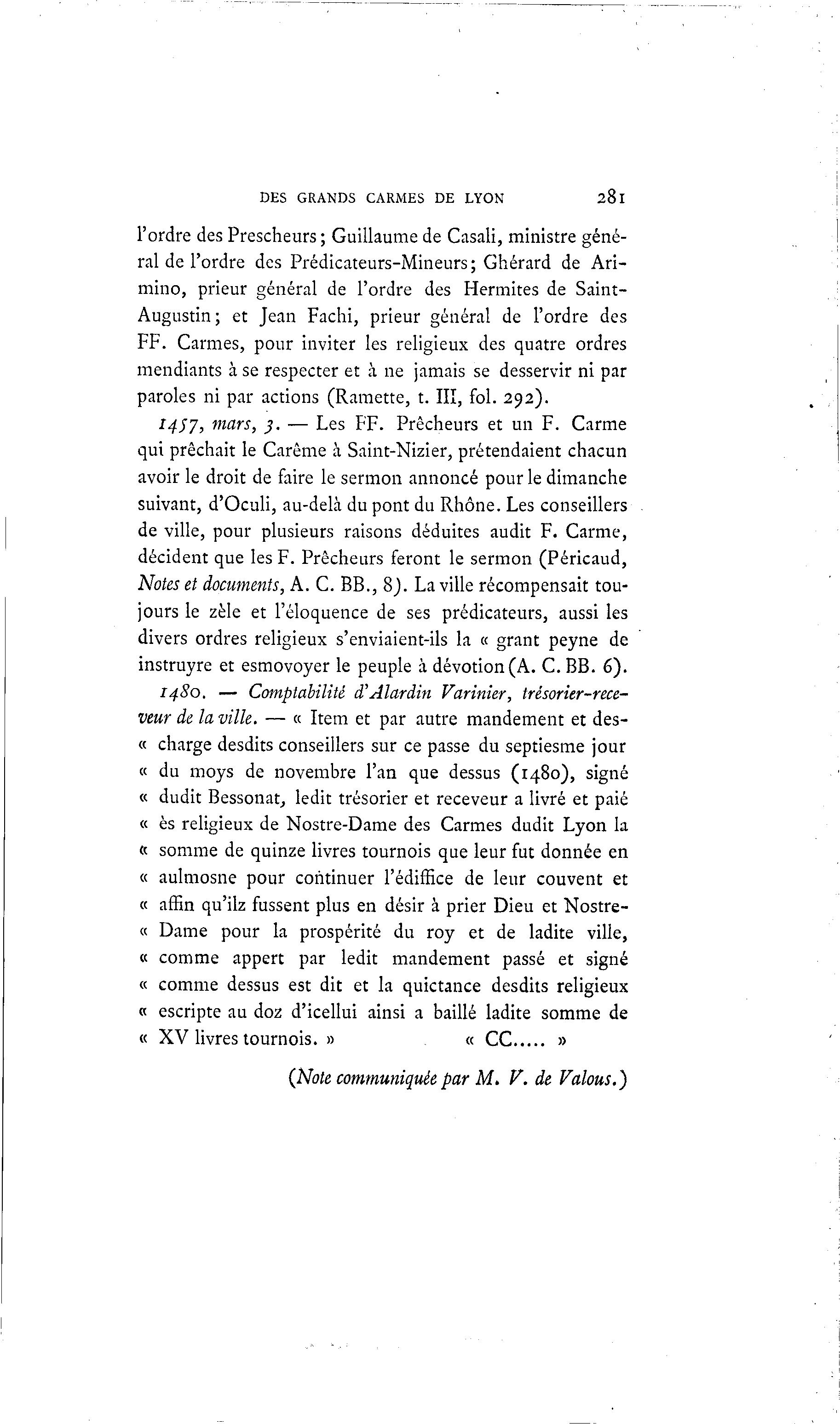 « es religieux de Nostre-Dame des Carmes dudit Lyon la