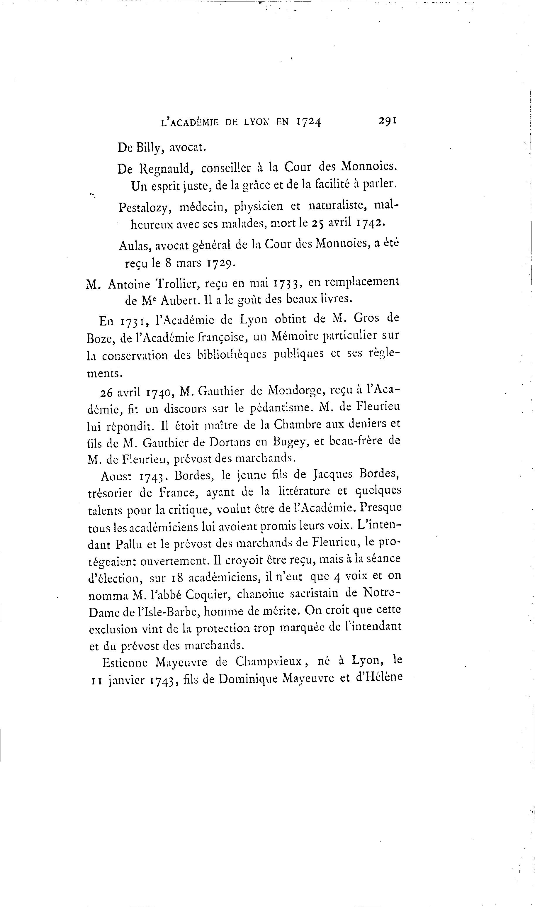 En 1731, l'Académie de Lyon obtint de M. Gros de
