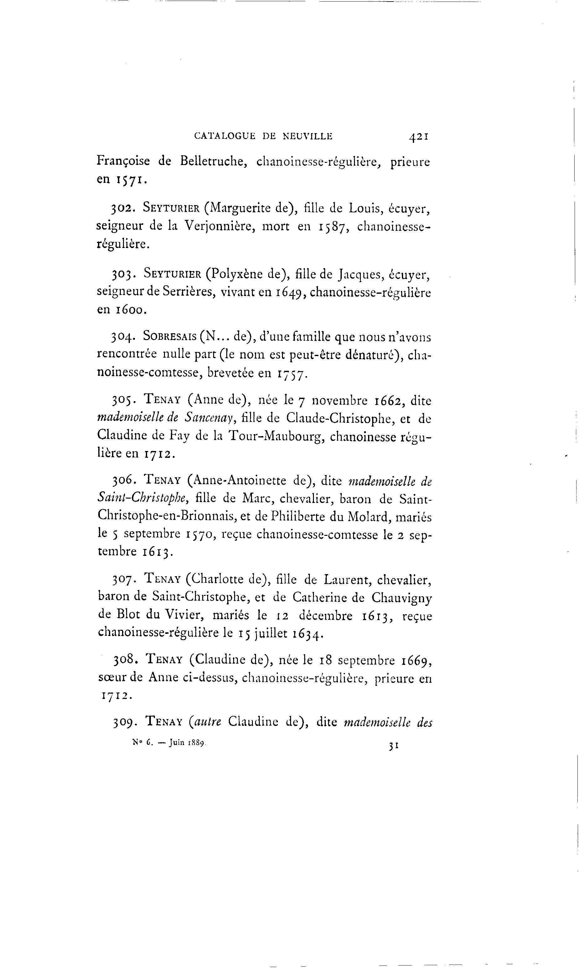 309. TENAY (autre Claudine de), dite mademoiselle des