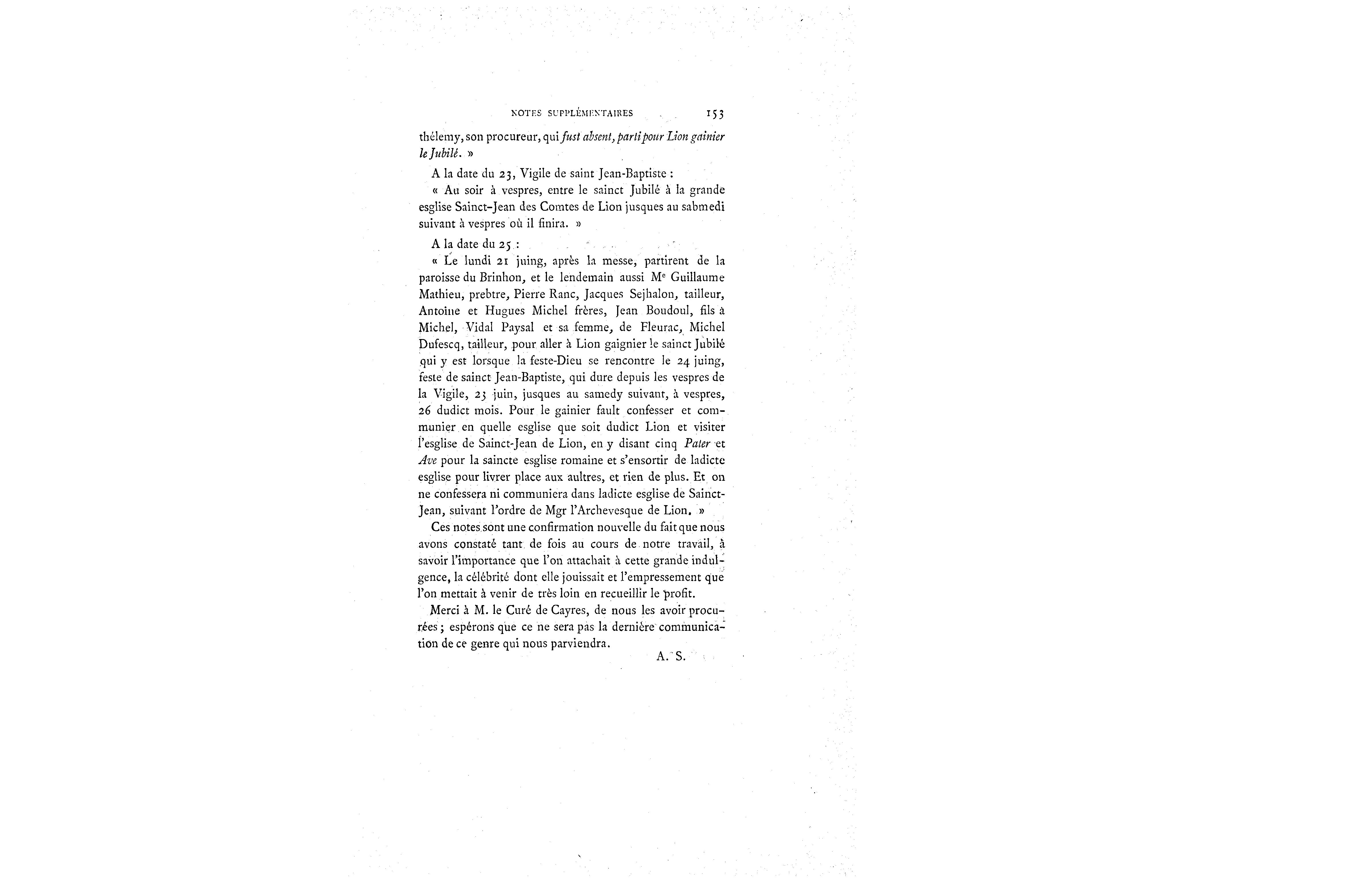 Merci à M. le Curé de Cayres, de nous les avoir procu-