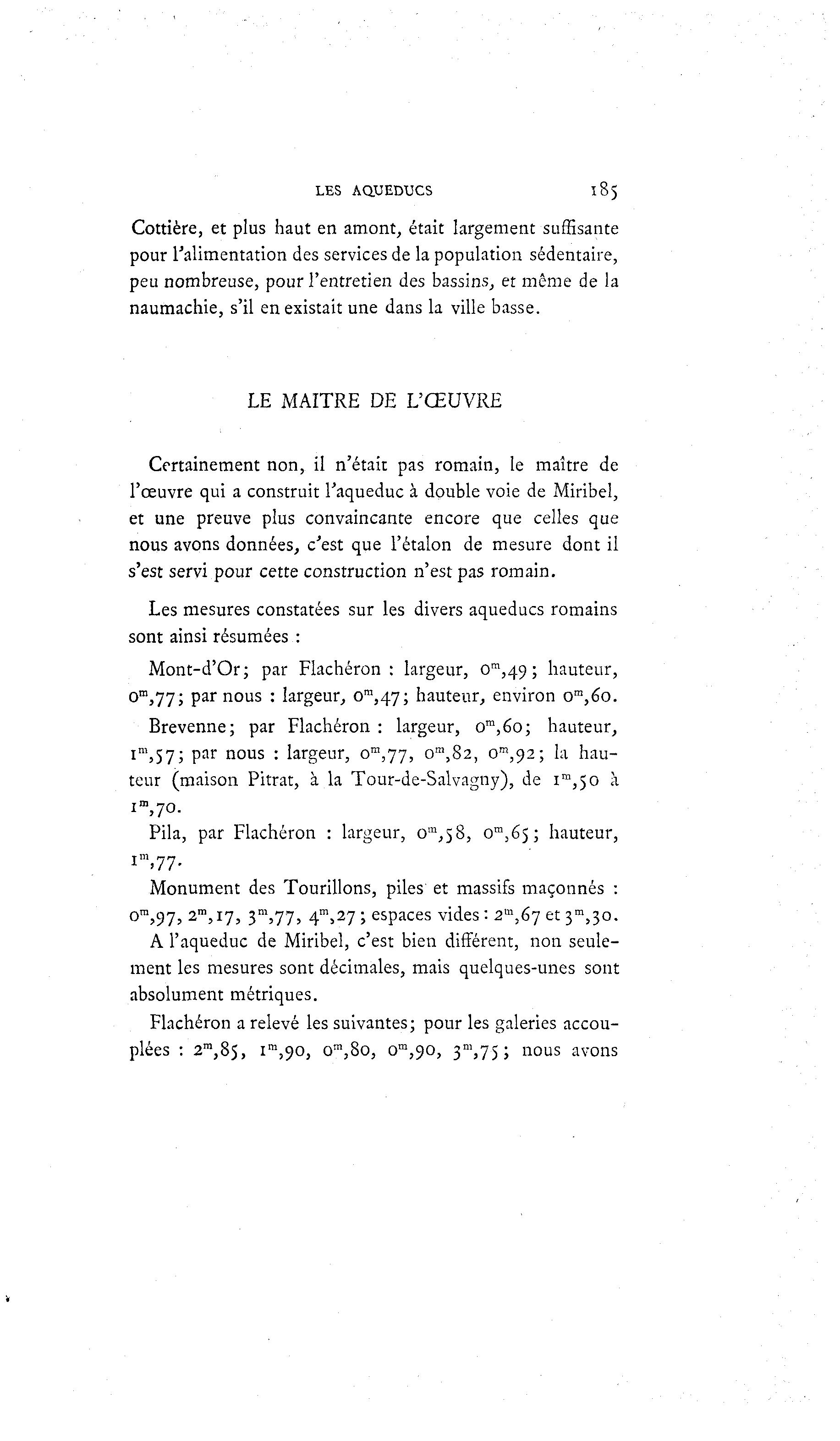 Flachéron a relevé les suivantes; pour les galeries accou-