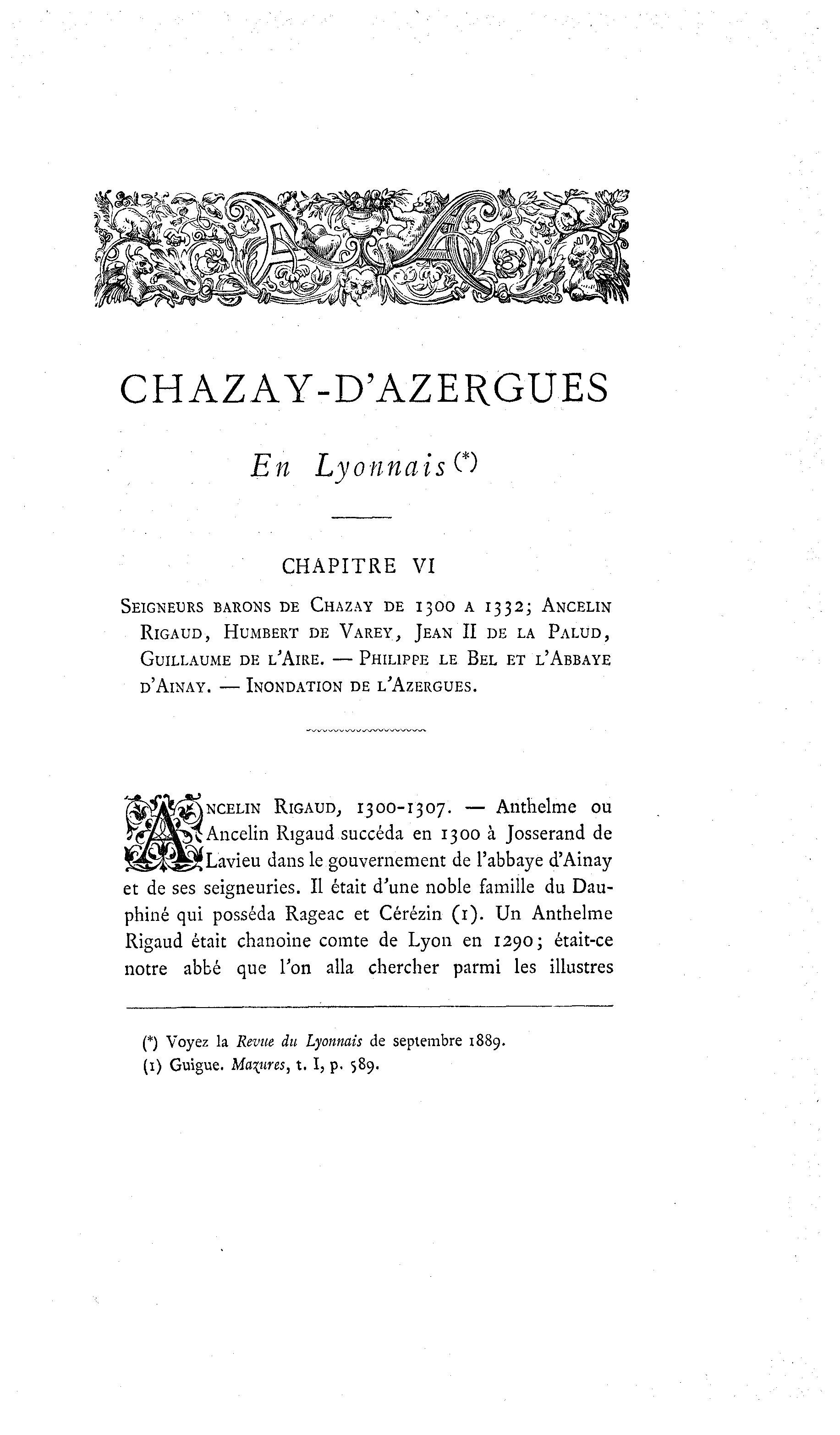 (*) Voyez la Revue du Lyonnais de septembre 1889.