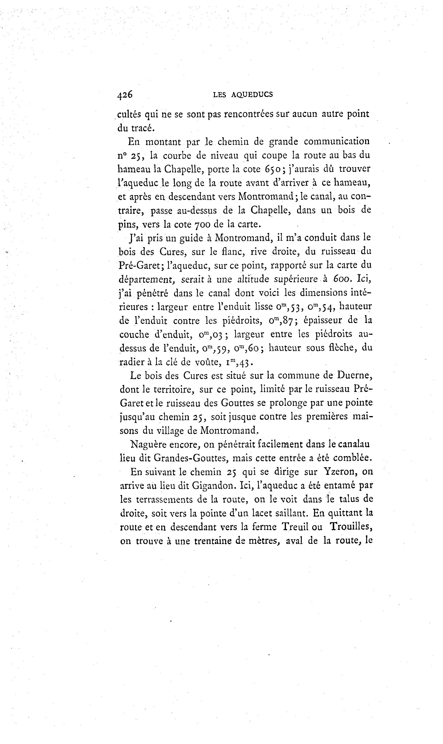 Pré-Garet; l'aqueduc, sur ce point, rapporté sur la carte du