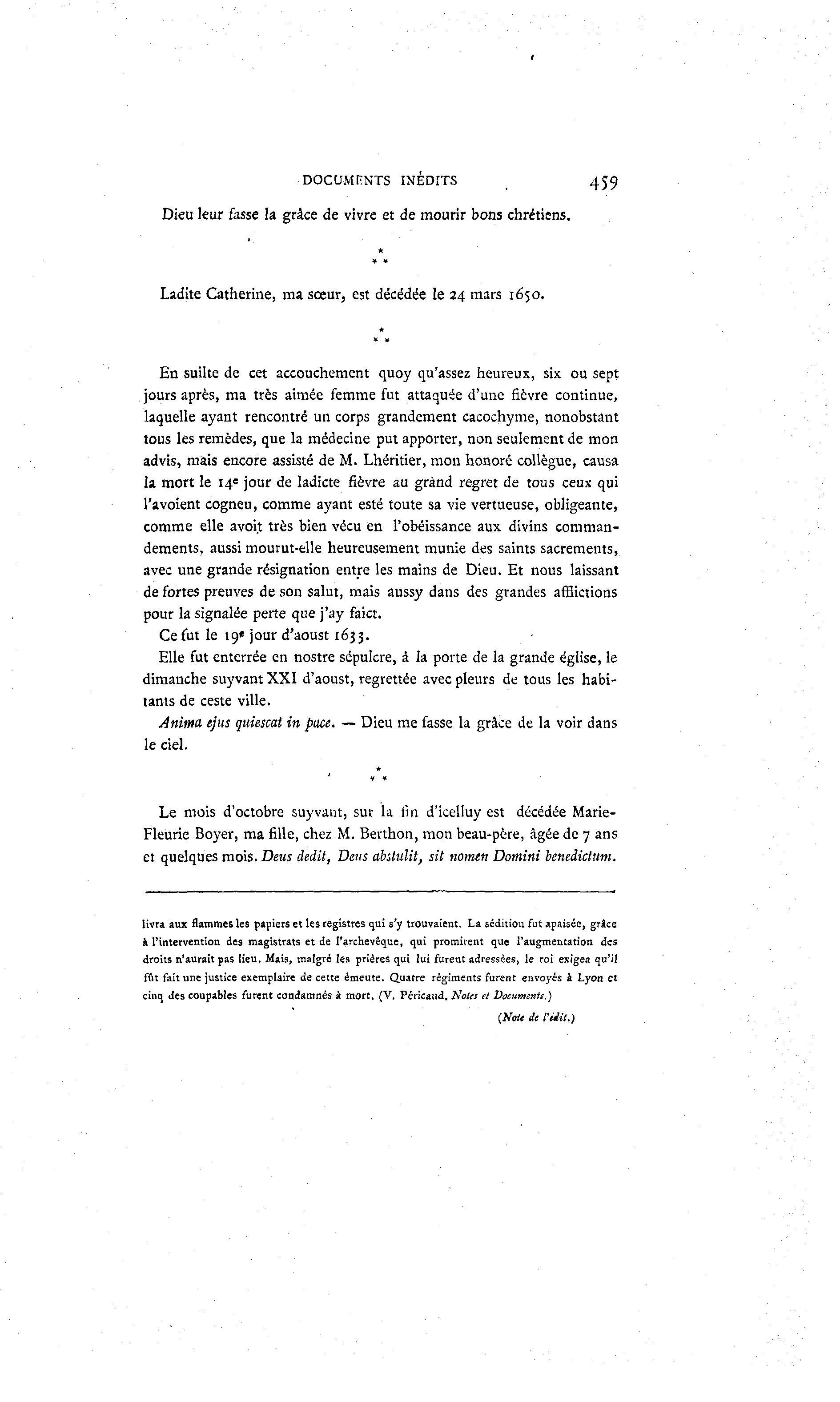 Ladite Catherine, ma sœur, est décédée le 24 mars 1650.