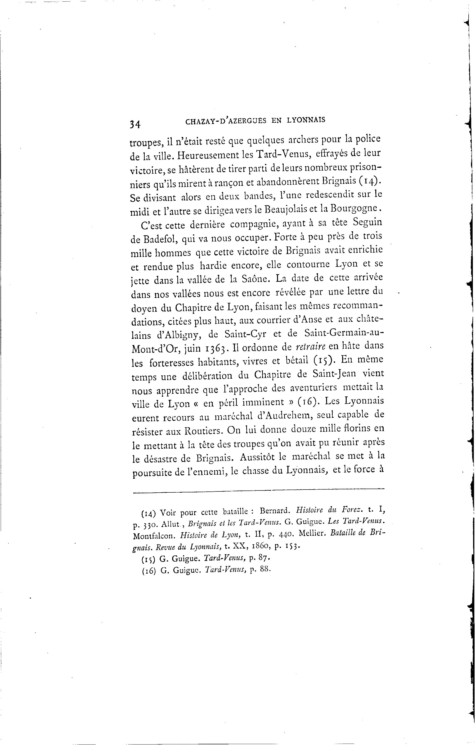 p. 330. Allut , Brignais el les Tard-Venus. G. Guigue. Les Tard-Venus.