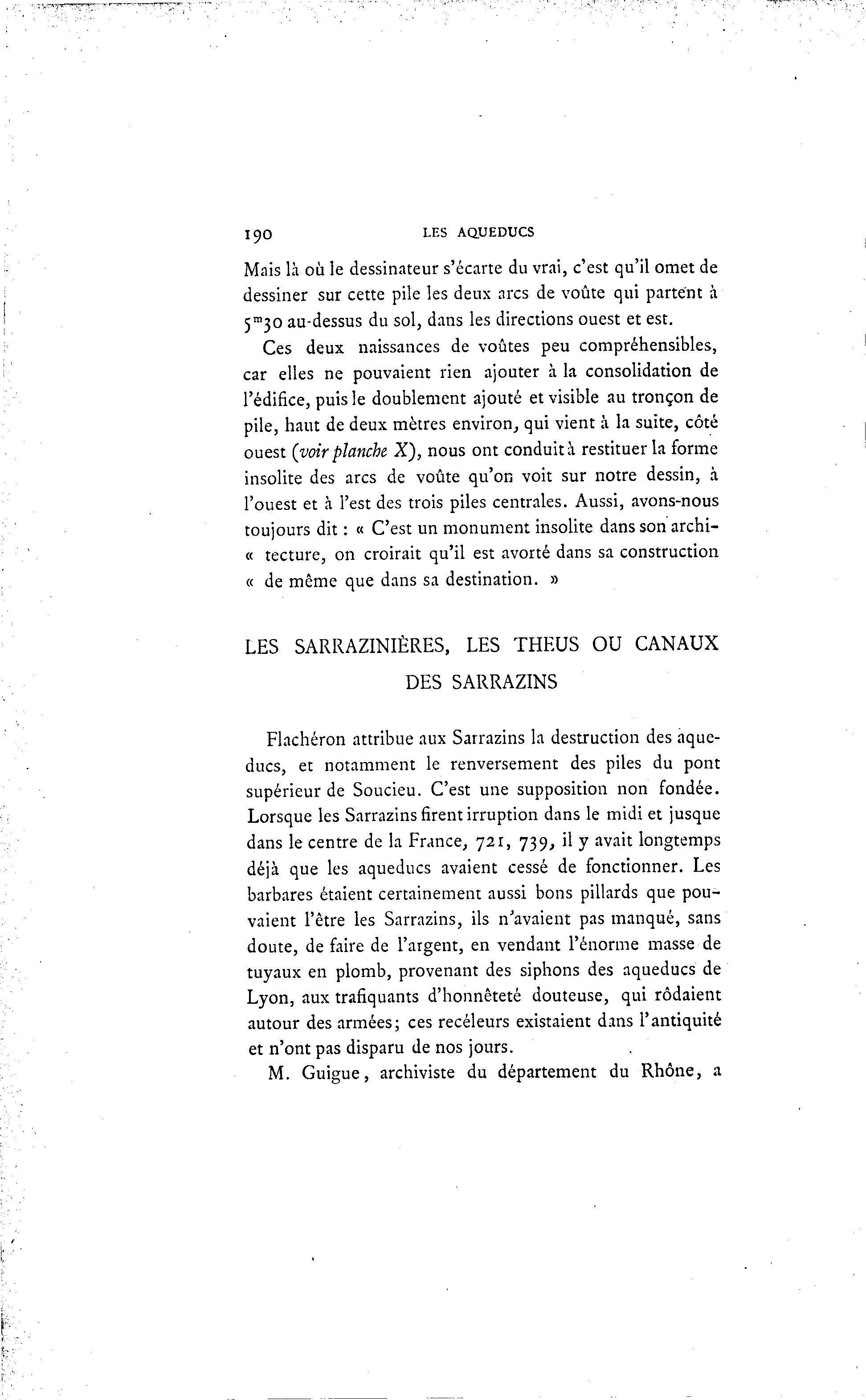 Flachéron attribue aux Sarrazins la destruction des aque-