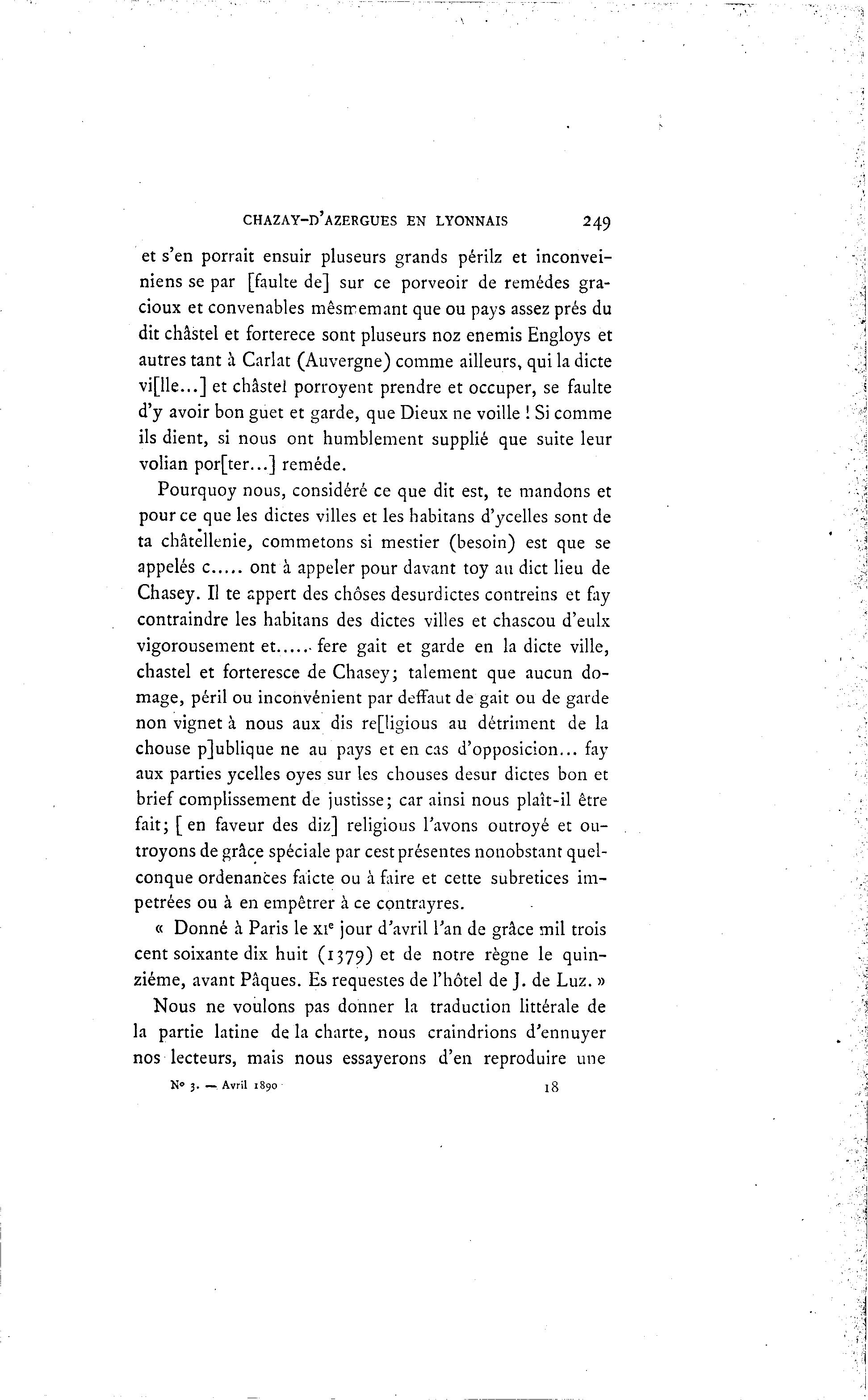 la partie latine de la charte, nous craindrions d'ennuyer