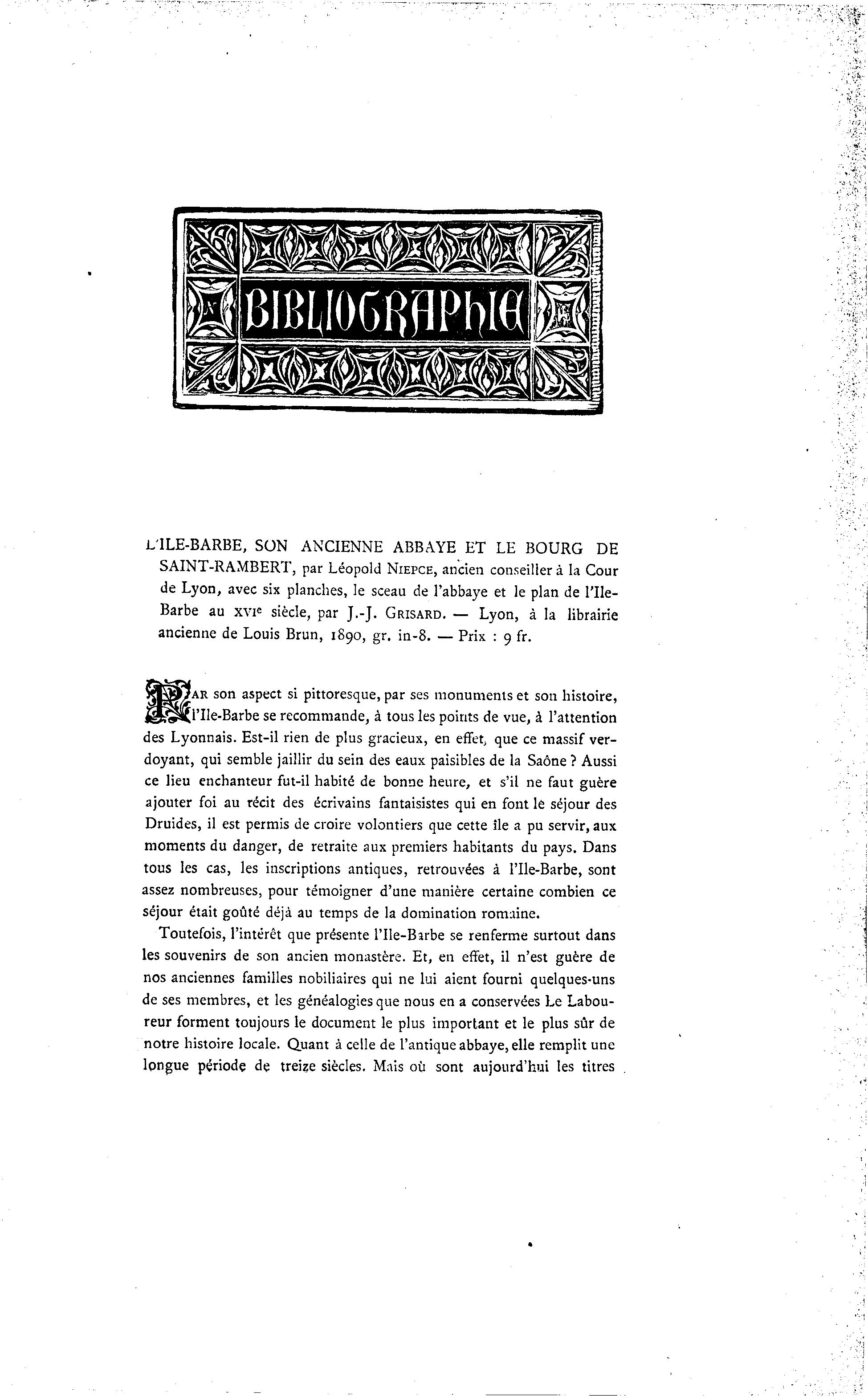 L'ILE-BARBE, SON ANCIENNE ABBAYE ET LE BOURG DE