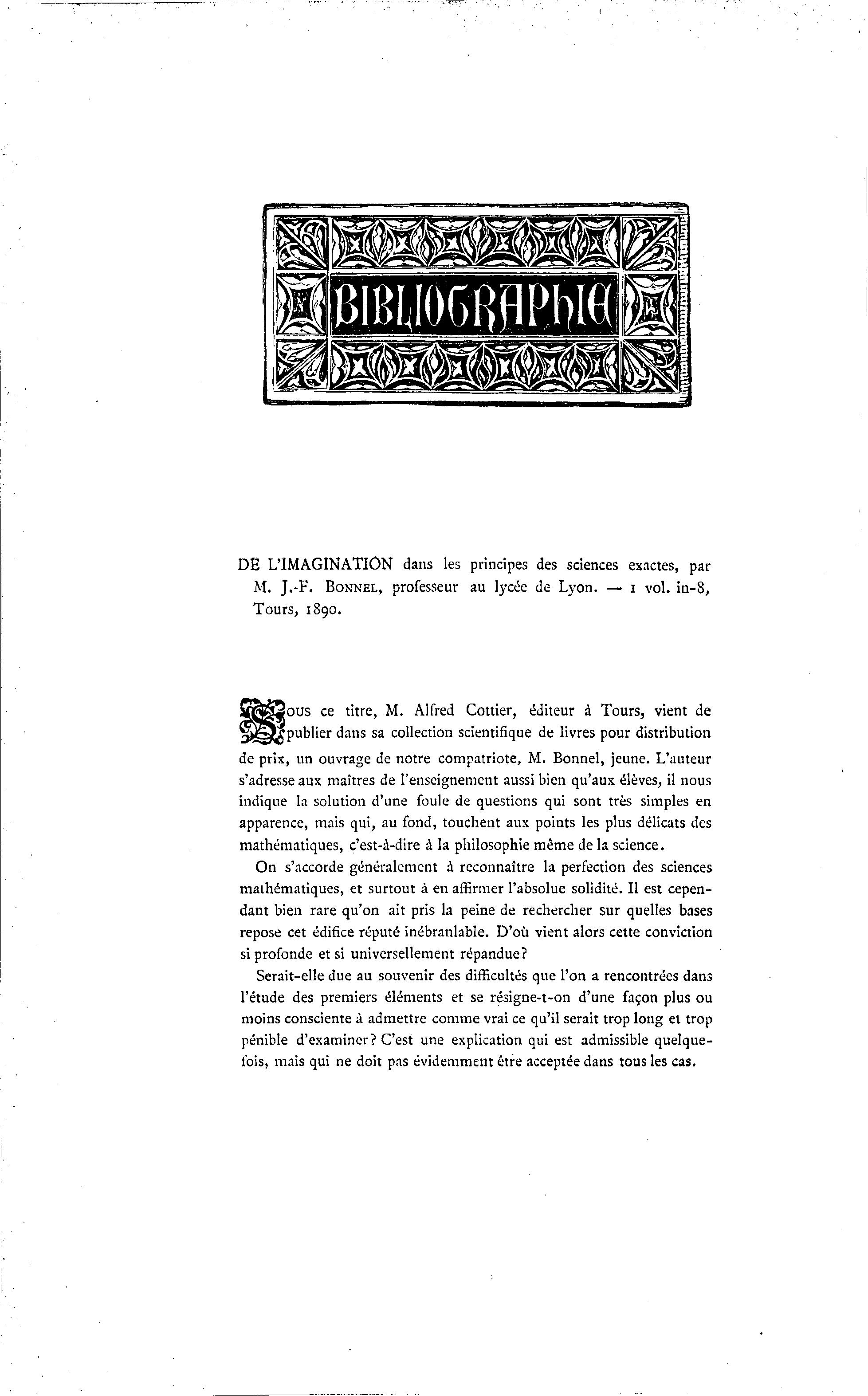 DE L'IMAGINATION dans les principes des sciences exactes, par