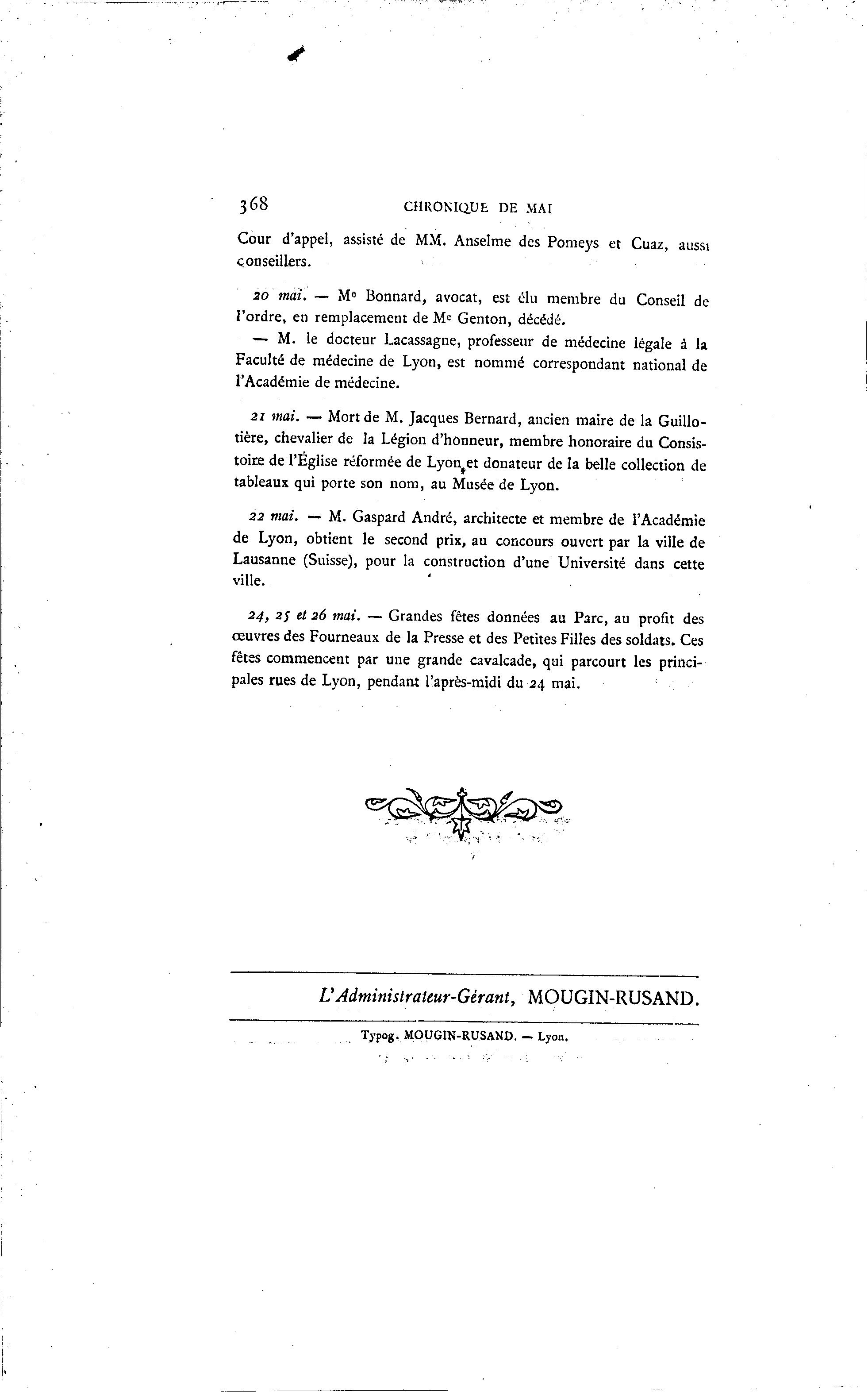 20 mai. — Me Bonnard, avocat, est élu membre du Conseil de