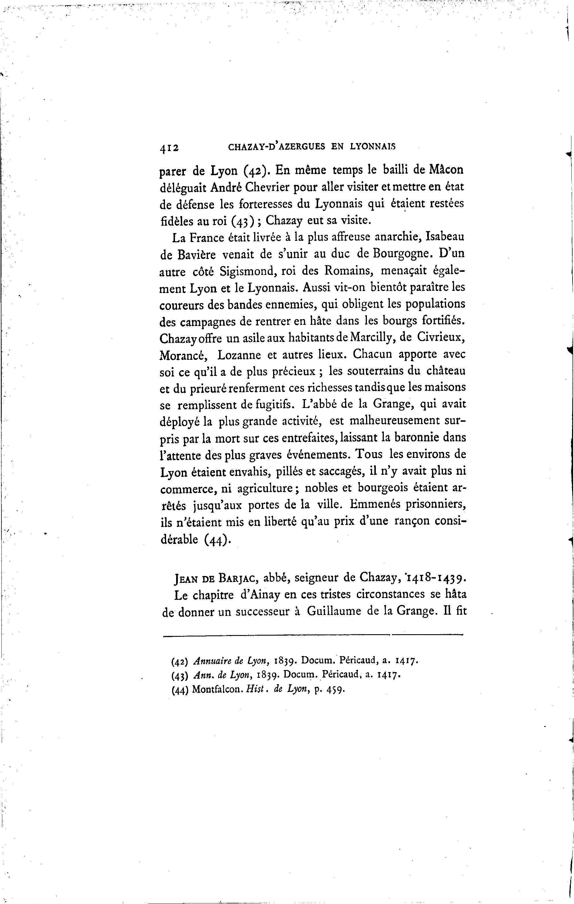 (45) Ann. de Lyon, 1839. Docum. Pêricaud, a. 1417.