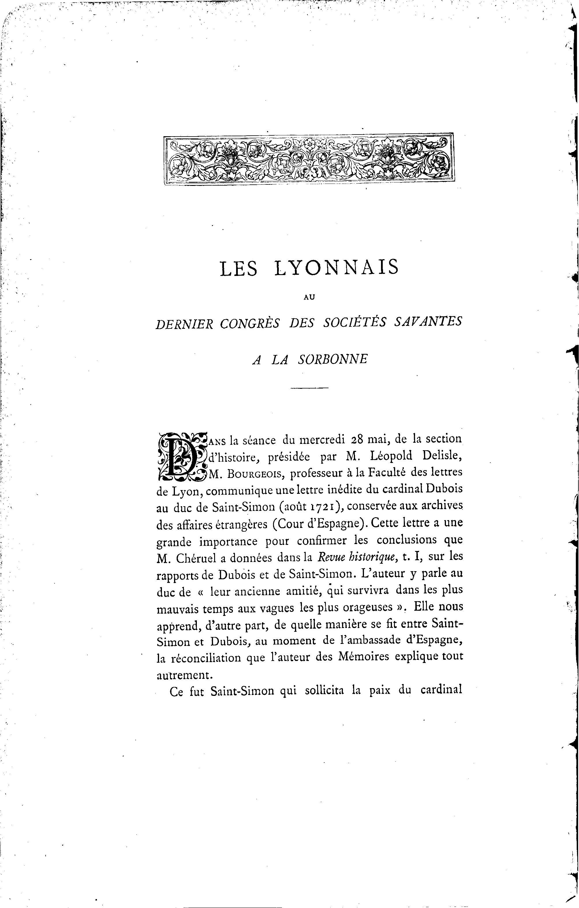 de Lyon, communique une lettre inédite du cardinal Dubois