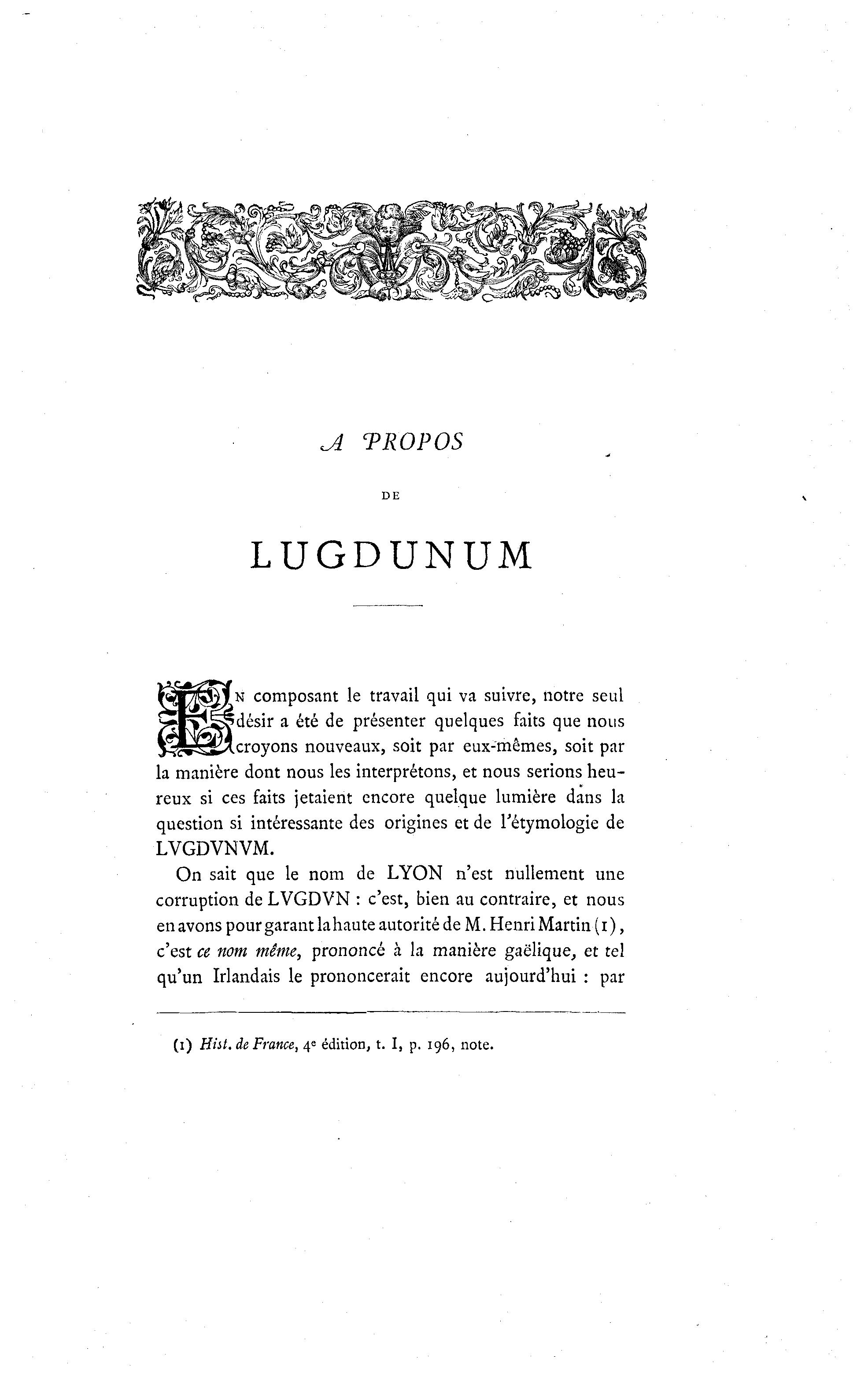 On sait que le nom de LYON n'est nullement une