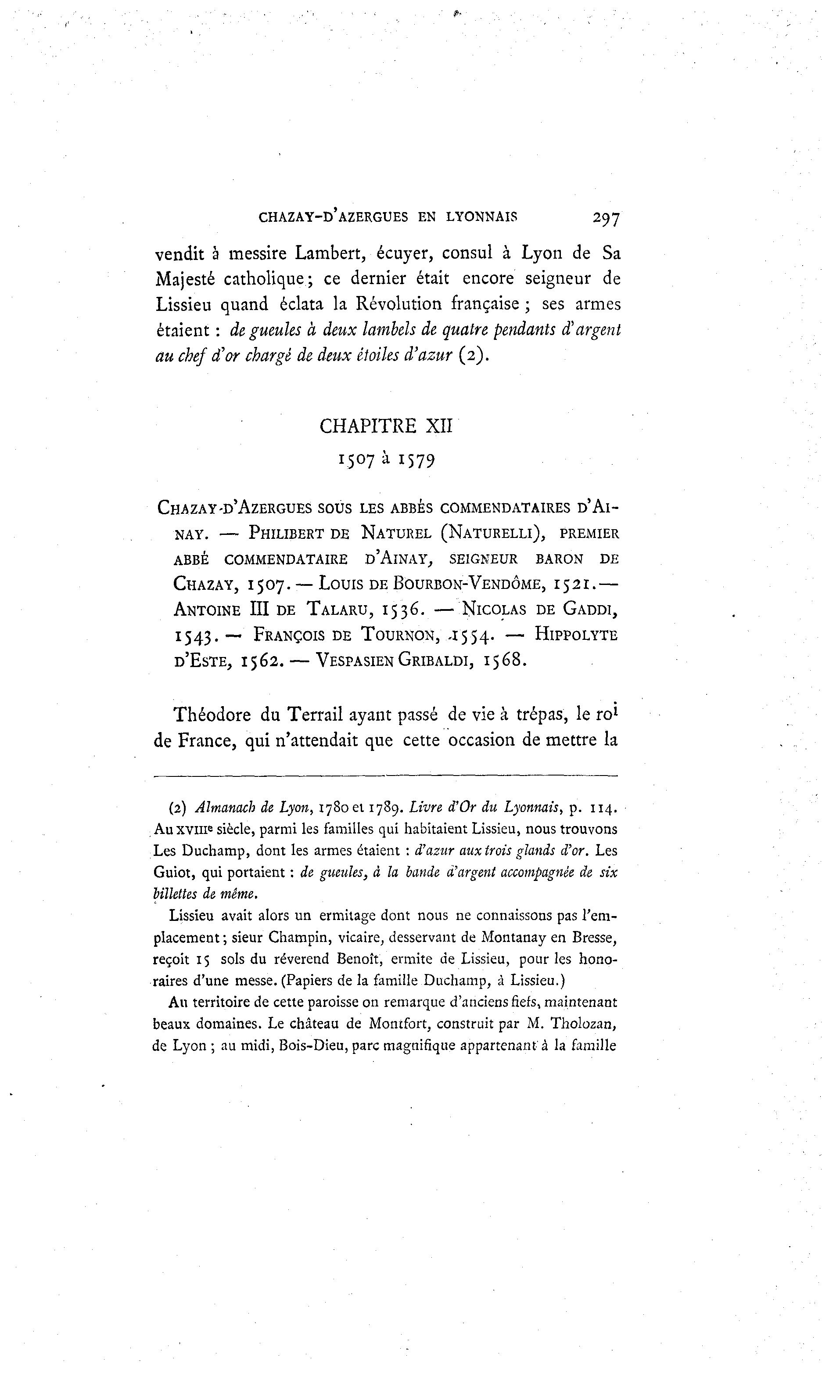 CHAZAY-D'AZERGUES SOUS LES ABBÉS COMMENDATAIRES D'Al-