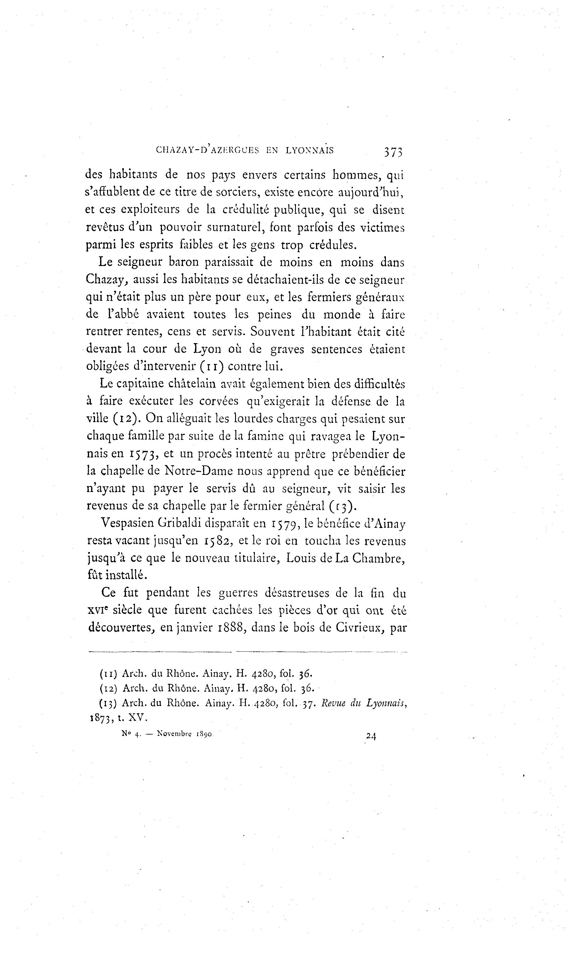 (13) Arch. du Rhône. Ainay. H. 4280, fol. 37. Revue du Lyonnais,