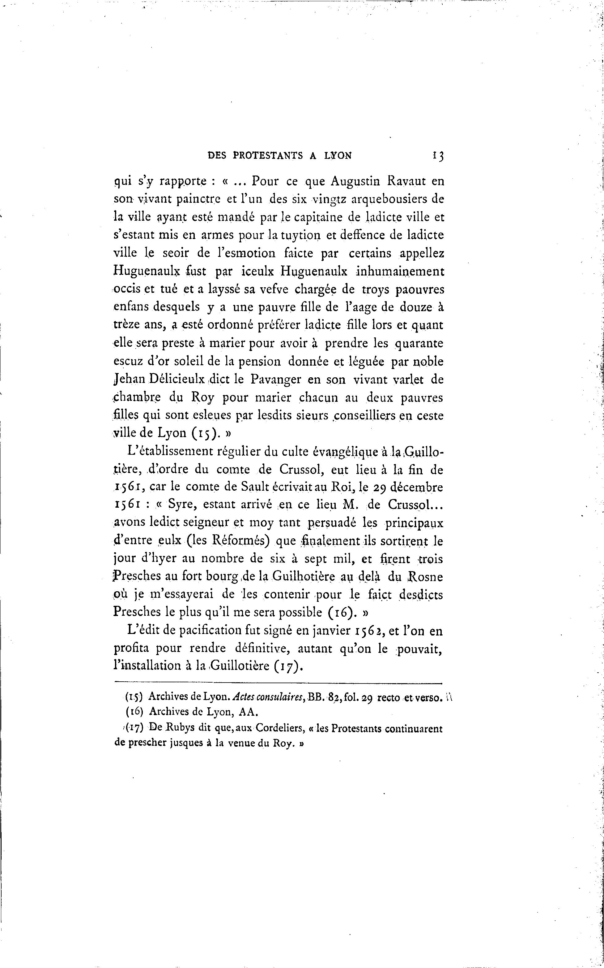 •(17) De Hubys dit que,aux Cordeliers, « les Protestants continuarent