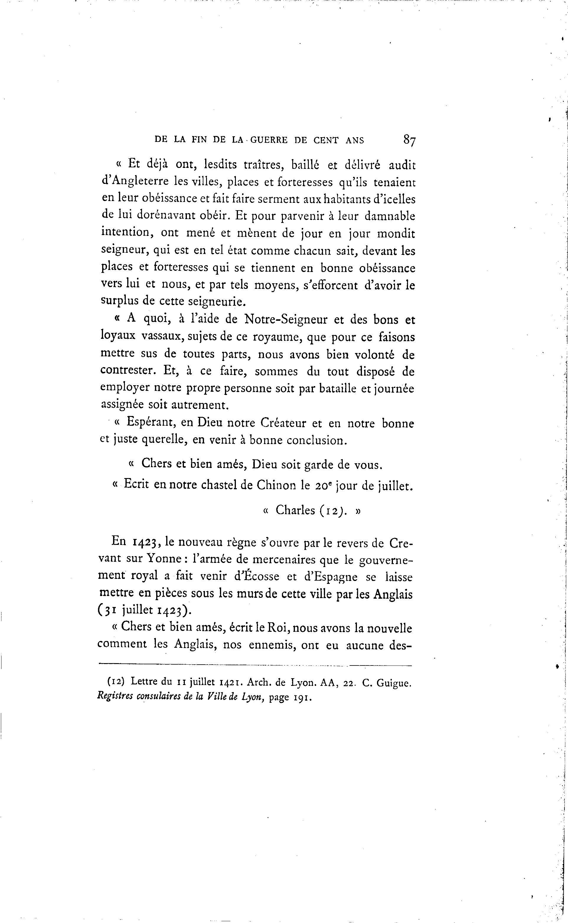 (12) Lettre du 11 juillet 1421. Arch. de Lyon. AA, 22. C. Guigue.