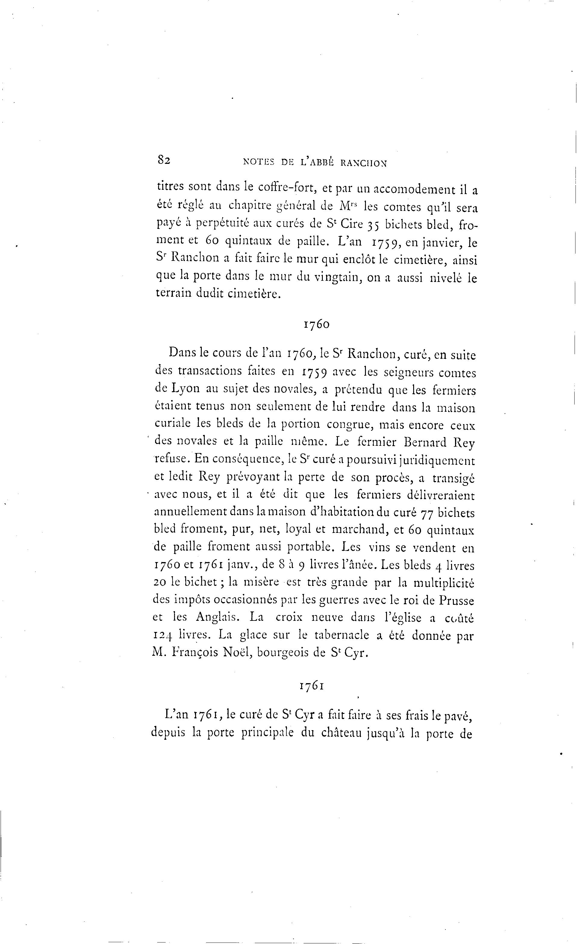Dans le cours de l'an 1760, le Sr Ranchon, curé, en suite