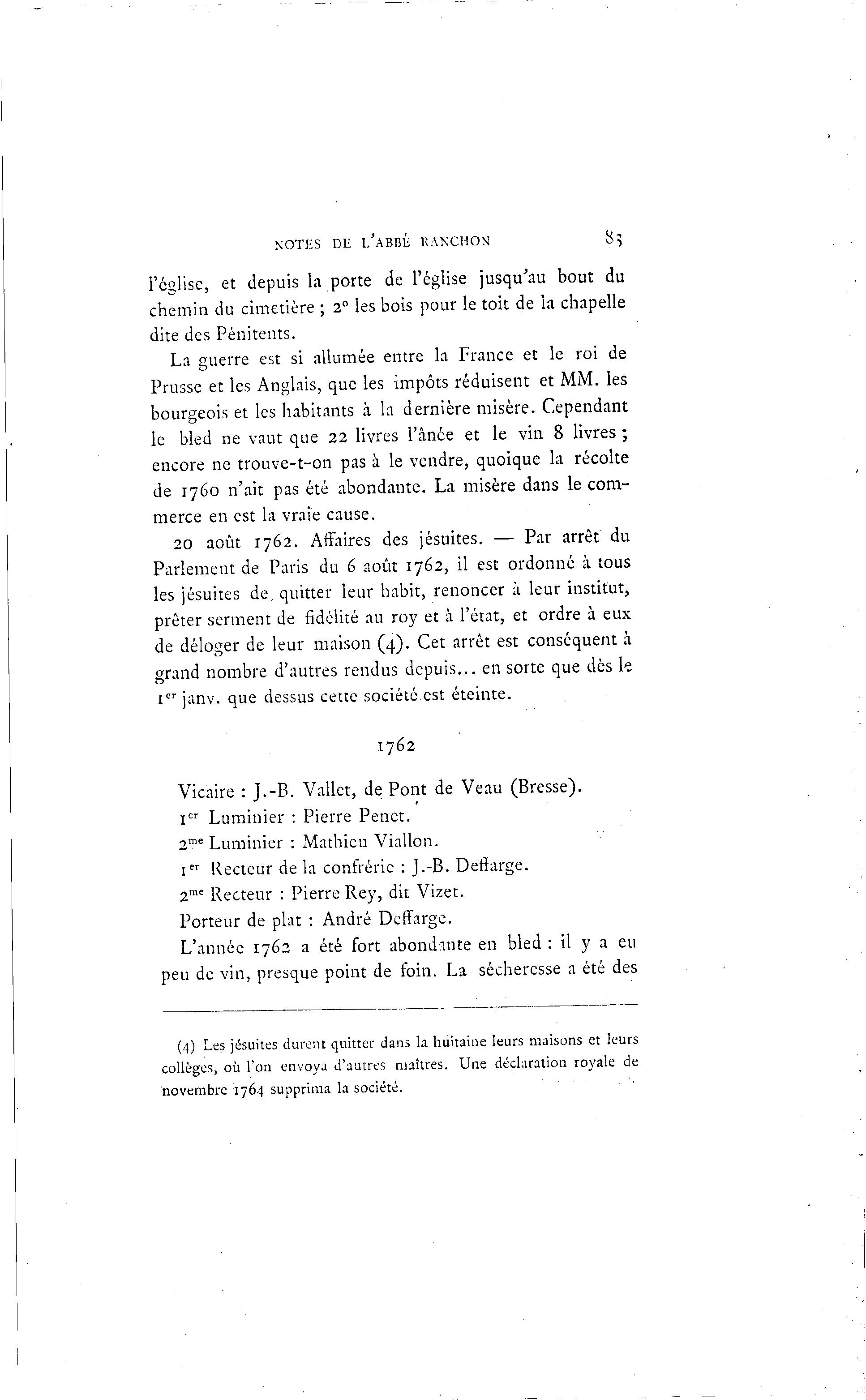 Vicaire : J.-B. Vallet, de Pont de Veau (Bresse).