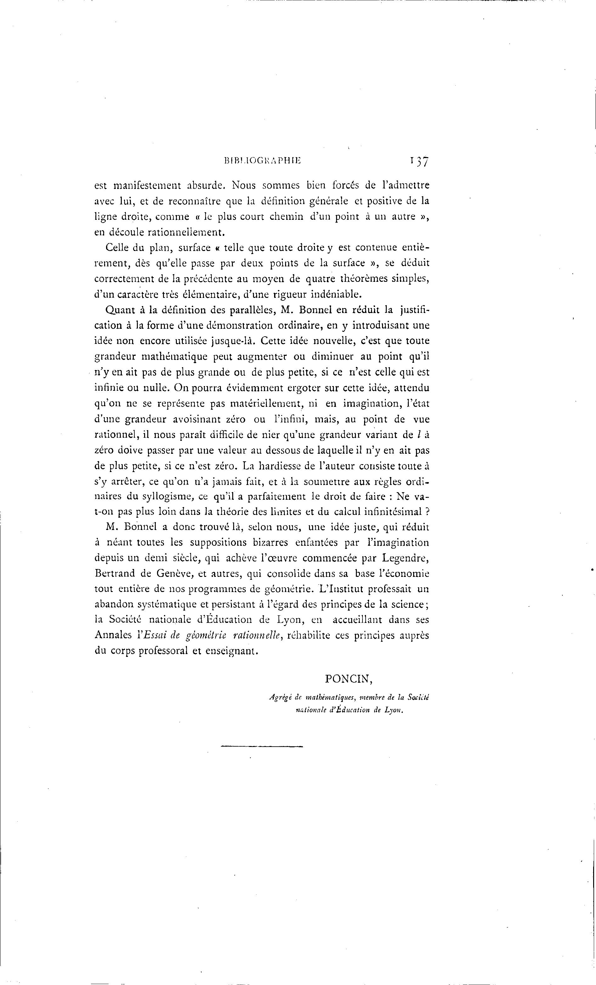 Quant à la définition des parallèles, M. Bonnel en réduit la justifi-