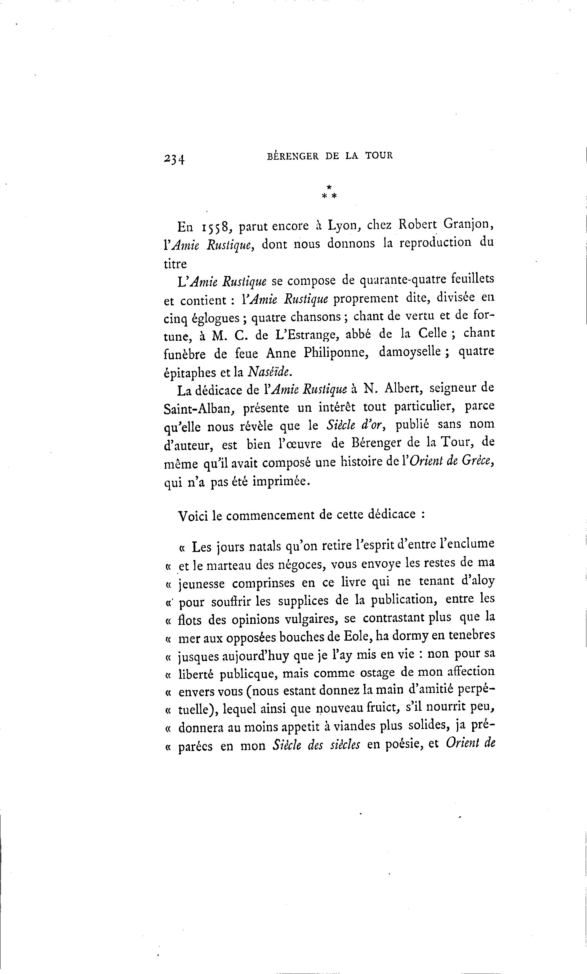 La dédicace de l'Amie Rustique à N. Albert, seigneur de