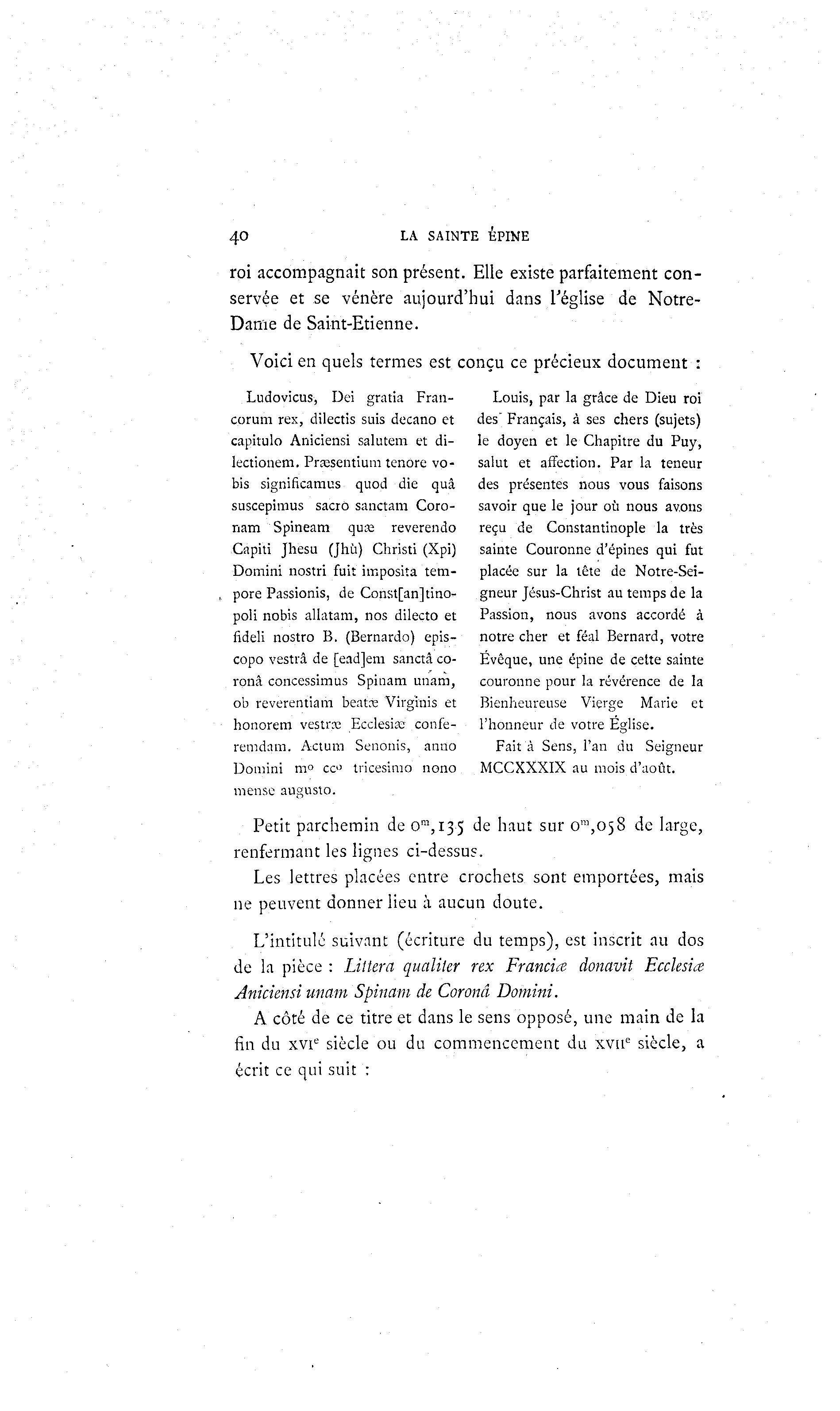 Petit parchemin de o m , 135 de haut sur o m ,058 de large,
