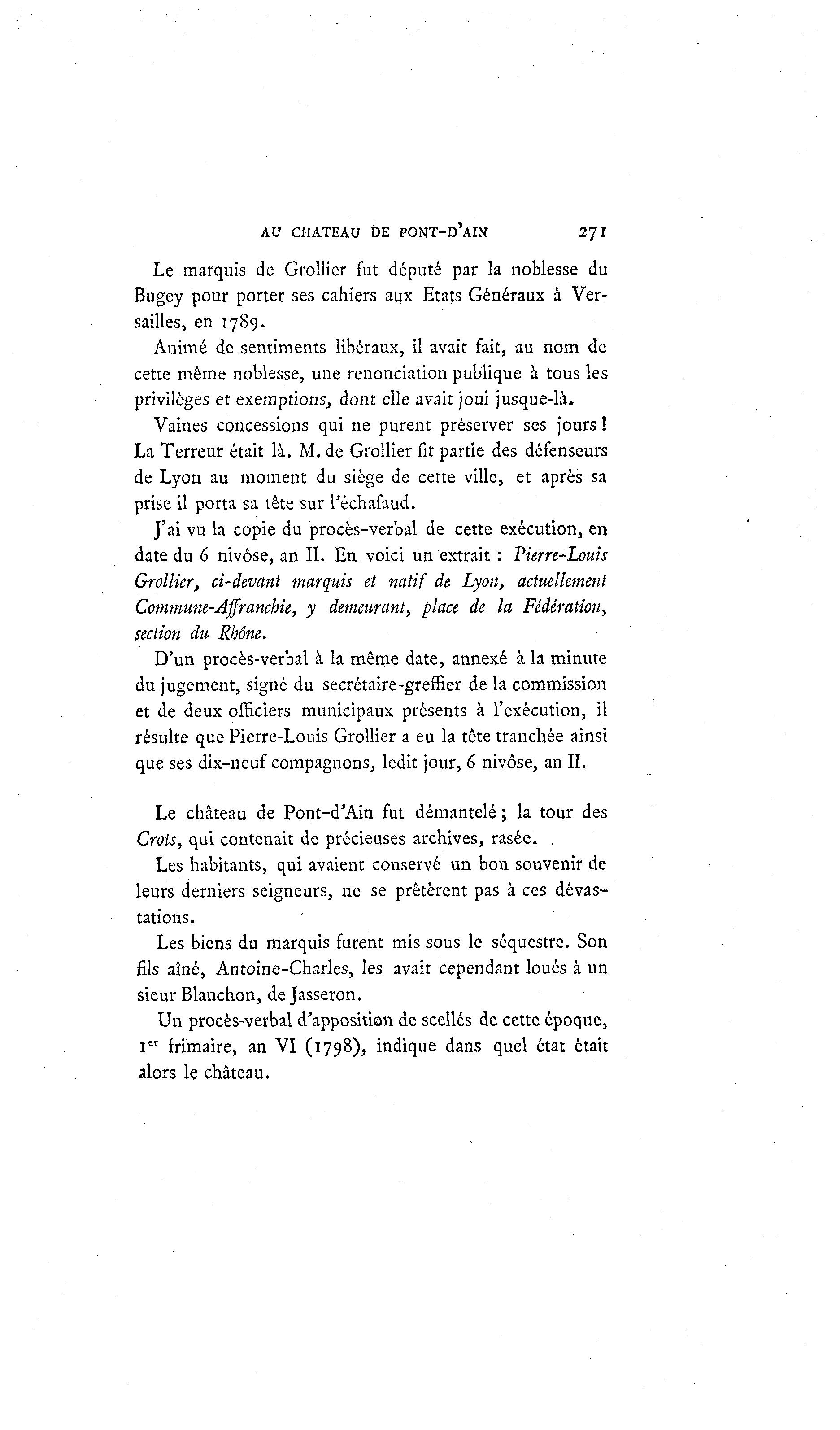 La Terreur était là . M. de Grollier fit partie des défenseurs