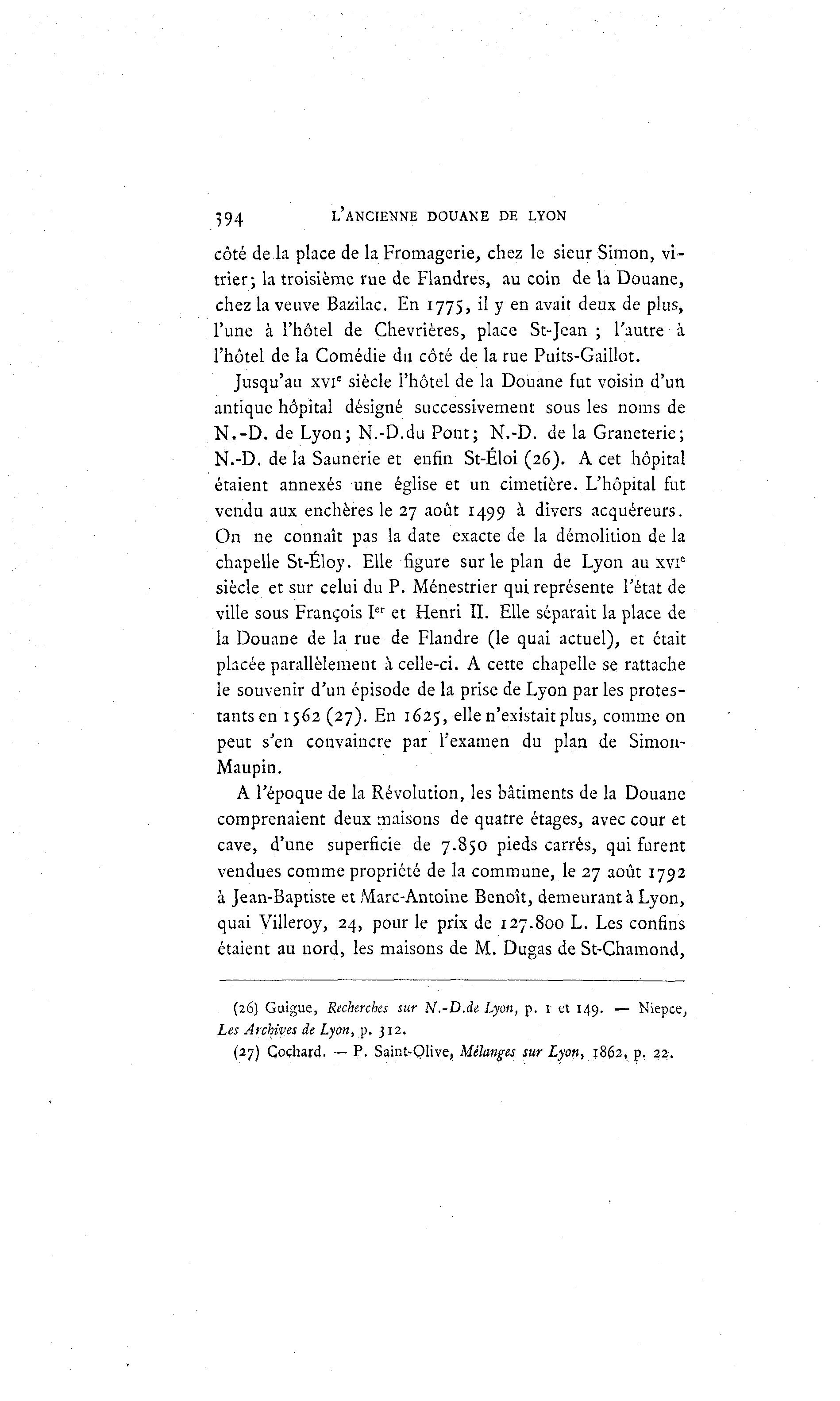 (27) Coçhard. — P. Saint-Çlive, Mélanges sur Lyon, 1862, p. 22.