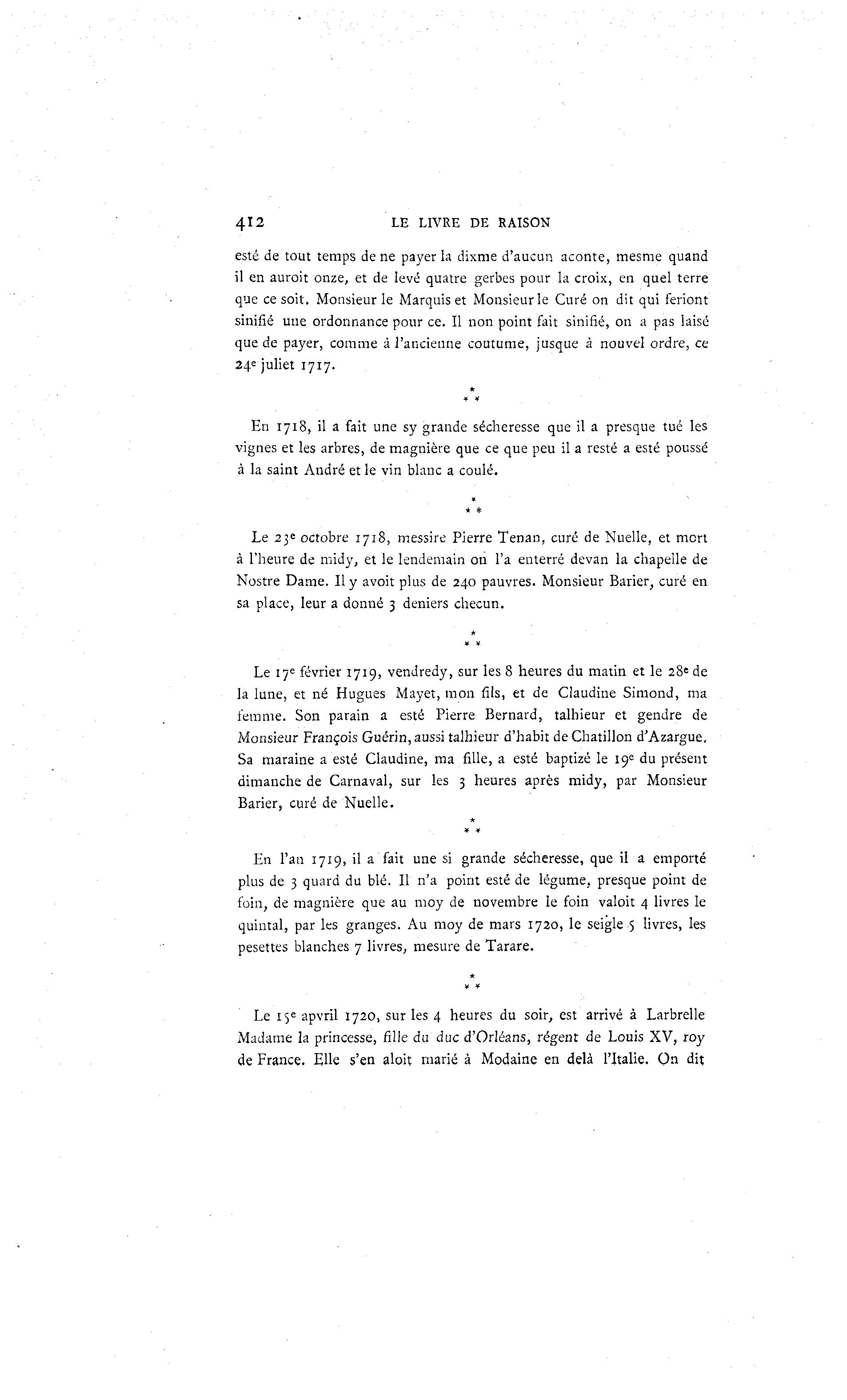 Le 15e apvril 1720, sur les 4 heures du soir, est arrivé à Larbrelle