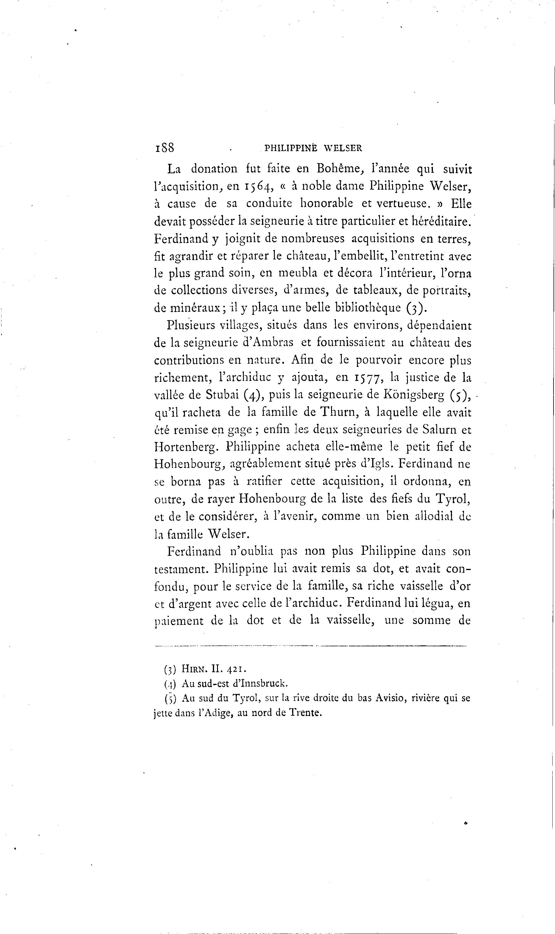 l'acquisition, en 1564, « à noble dame Philippine Welser,