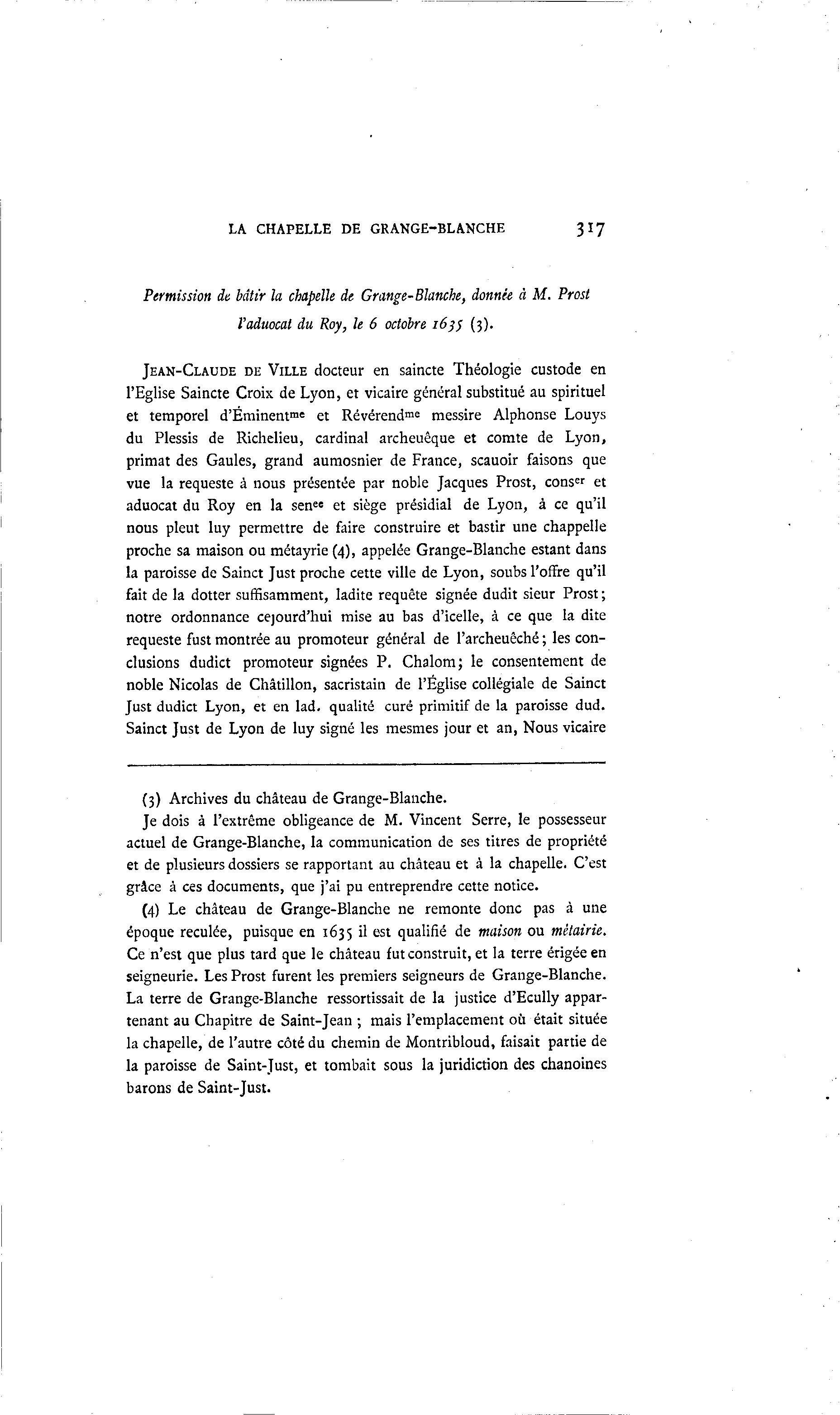 (3) Archives du château de Grange-Blanche.
