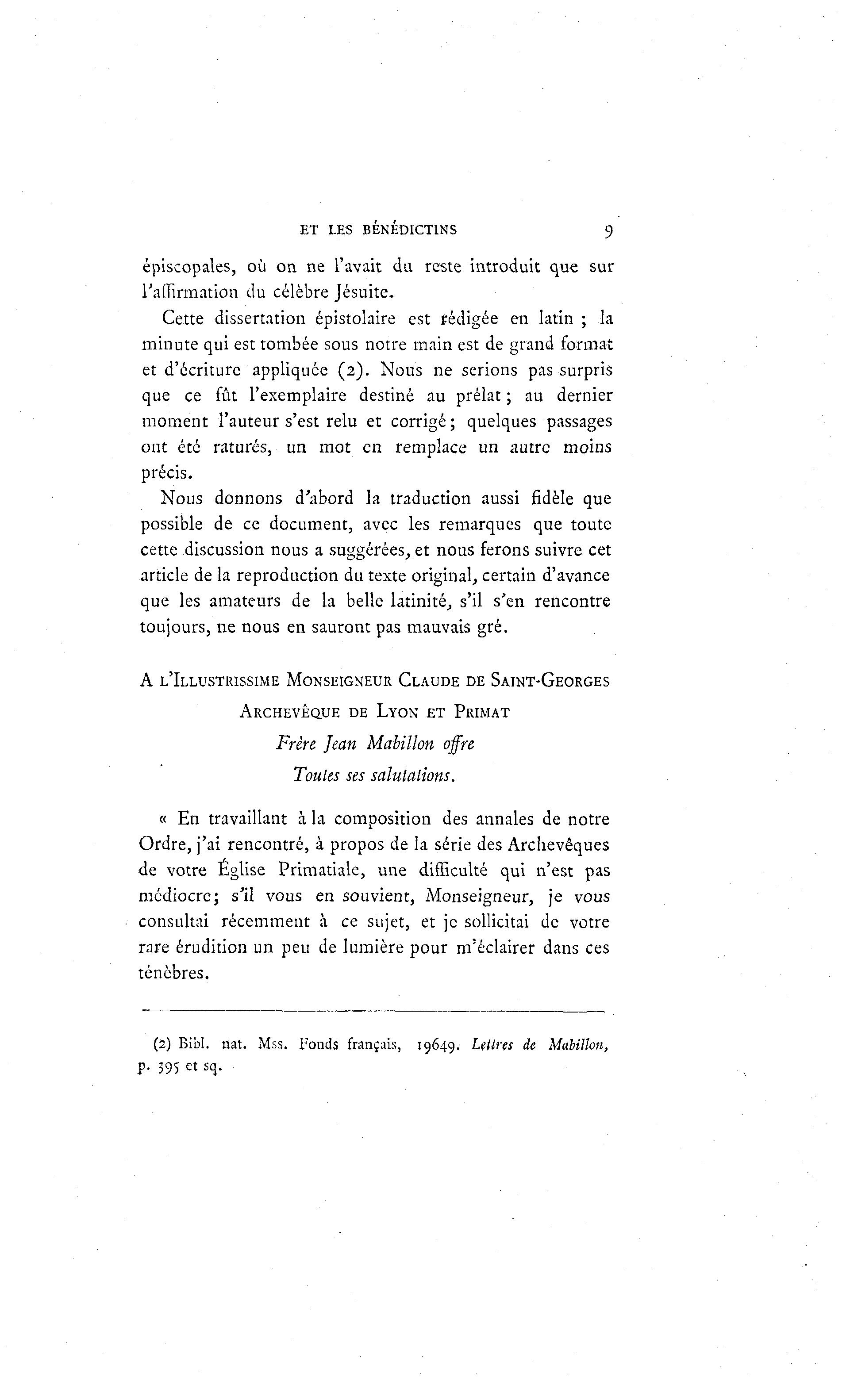 (2) Bibl. nat. Mss. Fonds français, 1964g. Lettres de Mabillon,
