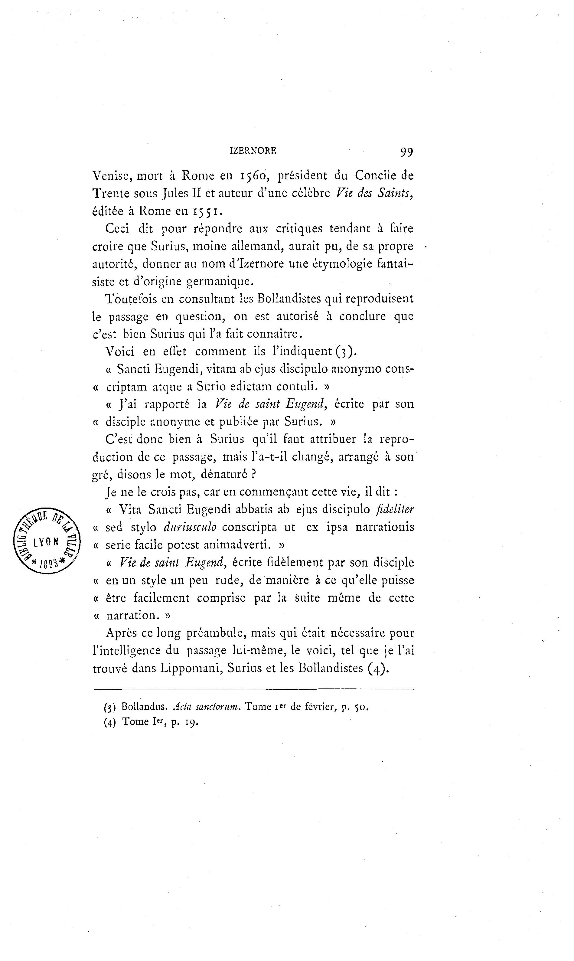 (3) Bollandus. Acta sanctorum. Tome I er de février, p. 50.