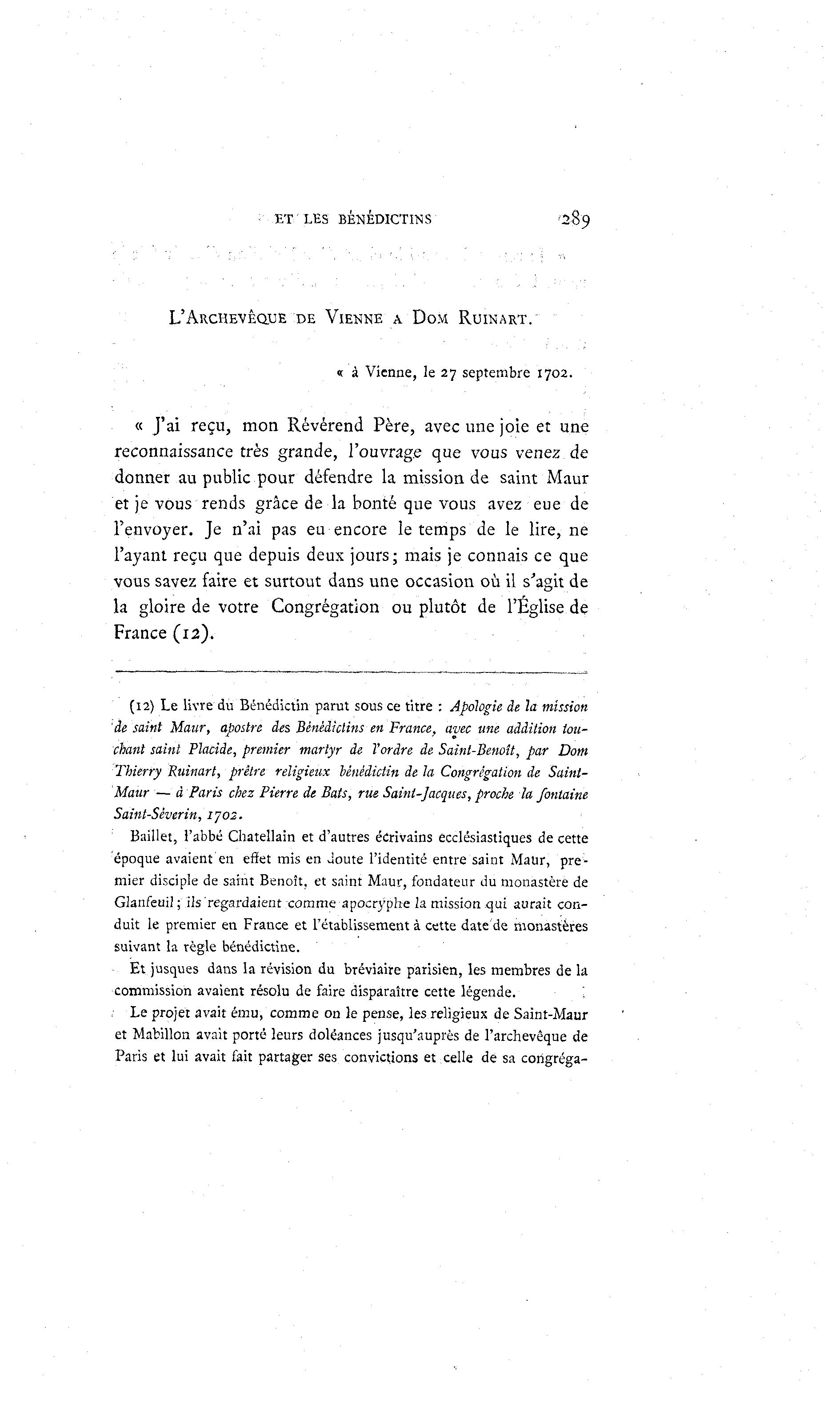 L'ARCHEVÊQUE'DE VIENNE A DOM RUINART.